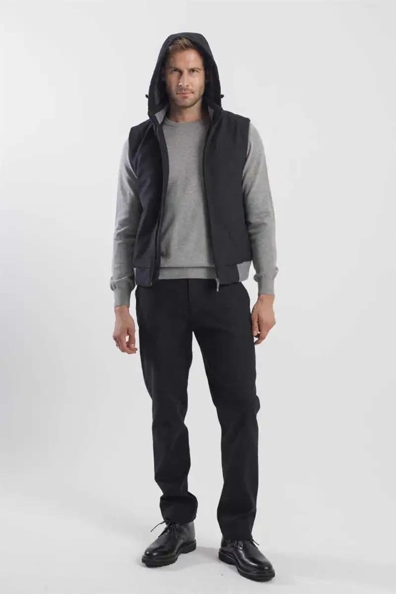 Oʻziga xos yoʻllari va zamonaviy dizayni bilan bu jilet qulaylik va oqlanganlikni birlashtiradi. Uning qulay kesimi va olib tashlanishi mumkin boʻlgan kaputi uni turli vaziyatlar uchun moslashuvchan qiladi. Rasmiy boʻlmagan tadbirlardan hafta oxiri sayohatlarigacha har qanday joyda oson qulay va zamonaviy koʻrinishga ega boʻling.