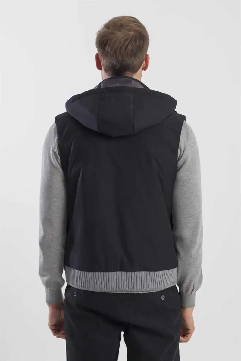**Qora Comfort Fit Naqshlari Ajratiluvchi Kaputli Jilet**
