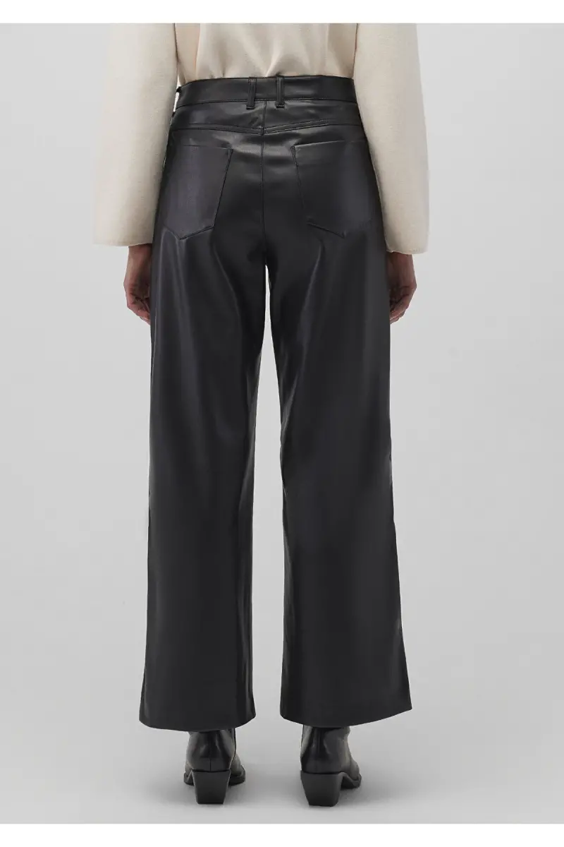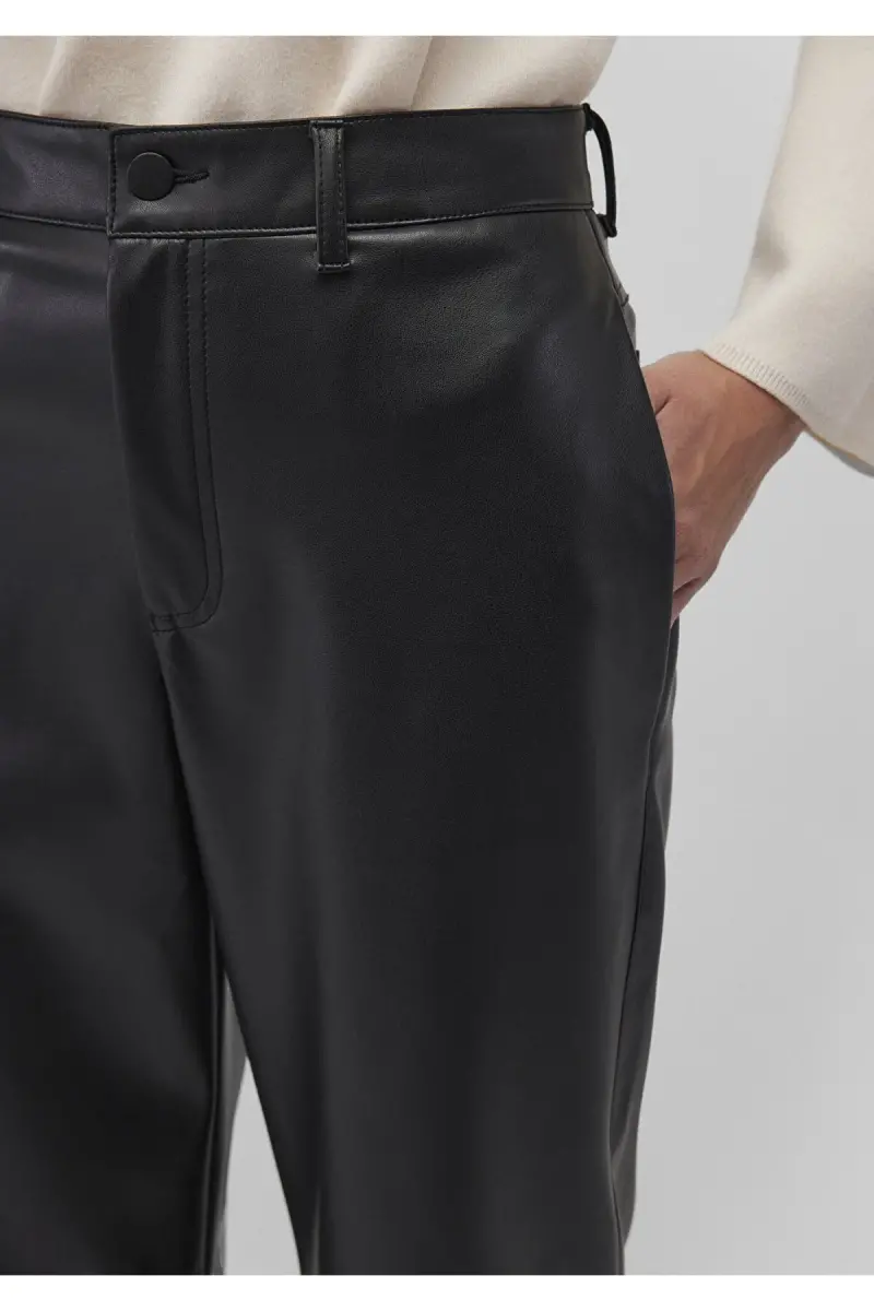 Qora sun'iy charm shim, baland bel, tor paça. %100 poliuretan.