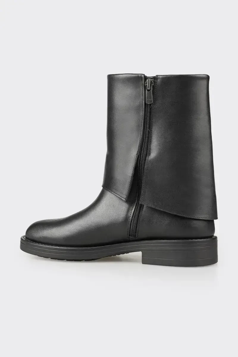 qora charm etik, ayollar etik, kundalik etik, charm etik, ayollar poyabzali, qora etik, qulay etik, zamonaviy etik, bog'ichli etik, moda etik