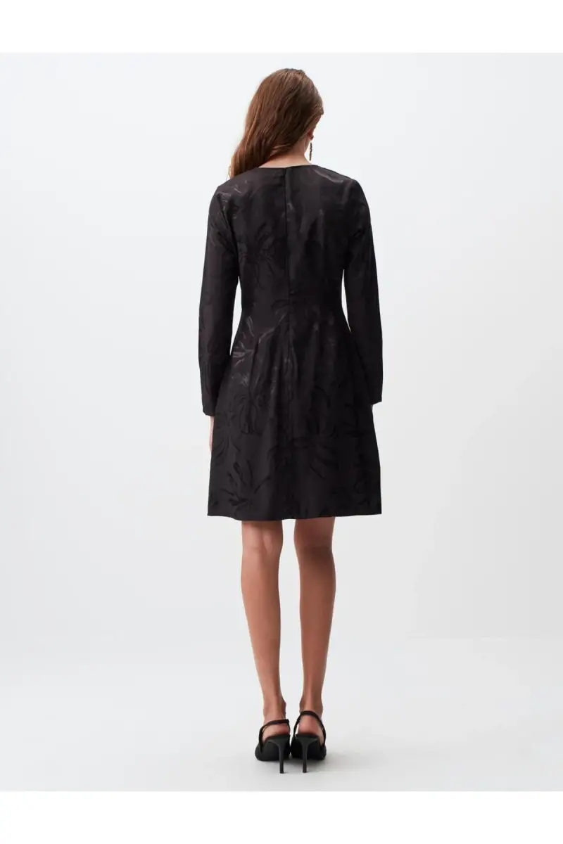 Qora yumaloq yoqa uzun yengli naqshli mini ko'ylak har qanday poyabzal va aksessuarlar bilan osongina kombinatsiyalanadi. To'piqlar bilan yanada nafis ko'rinishga erishishingiz, sport poyabzallari bilan esa qulay va kundalik uslub yaratishingiz mumkin. Ko'ylakingizni to'ldirish uchun sumkangiz va zargarlik buyumlari ham o'ziga xos xohishingizga ko'ra tanlashingiz mumkin.