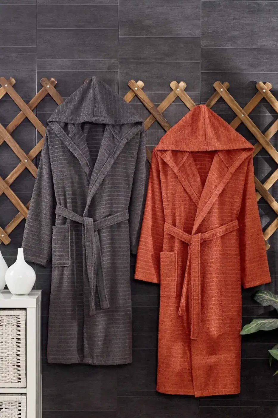Bornoz, Quina, Kiremit, Antrasit, Kapüşonlu, Oversize, Seti, Pamuk, Unisex, Konfor
