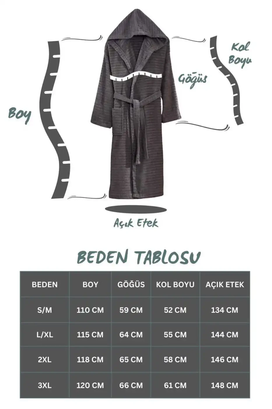 Quina Kiremit Antrasit Bornoz Seti | Büyük Boy Kapüşonlu | Şık ve Konforlu