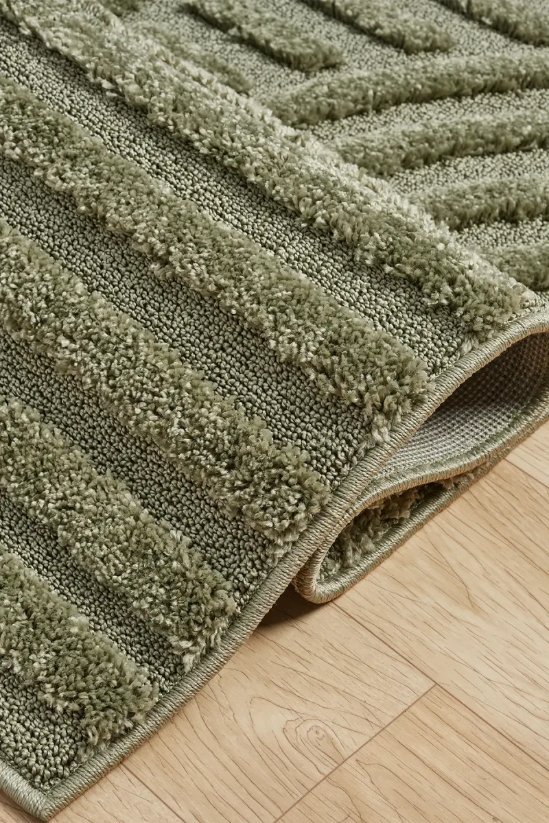 Quincey Bukleli Yumuşak Peluş Post Shaggy Krem Çocuk Odası Oturma Odası Salon Mutfak Halısı-Yeşil