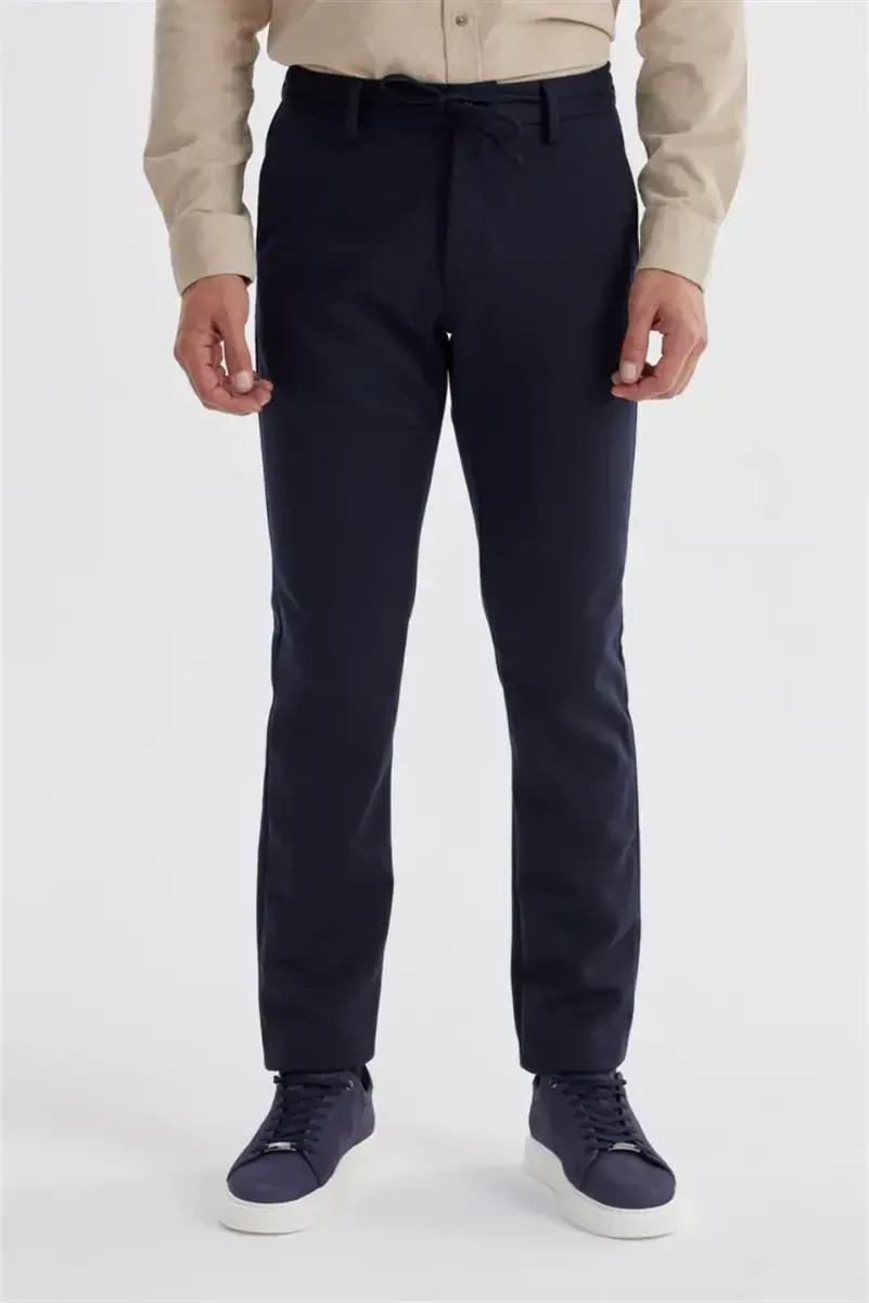 To'q ko'k rang jogger shim, Comfort Fit, elastik bel, yon cho'ntaklar, bo'shashgan naqsh