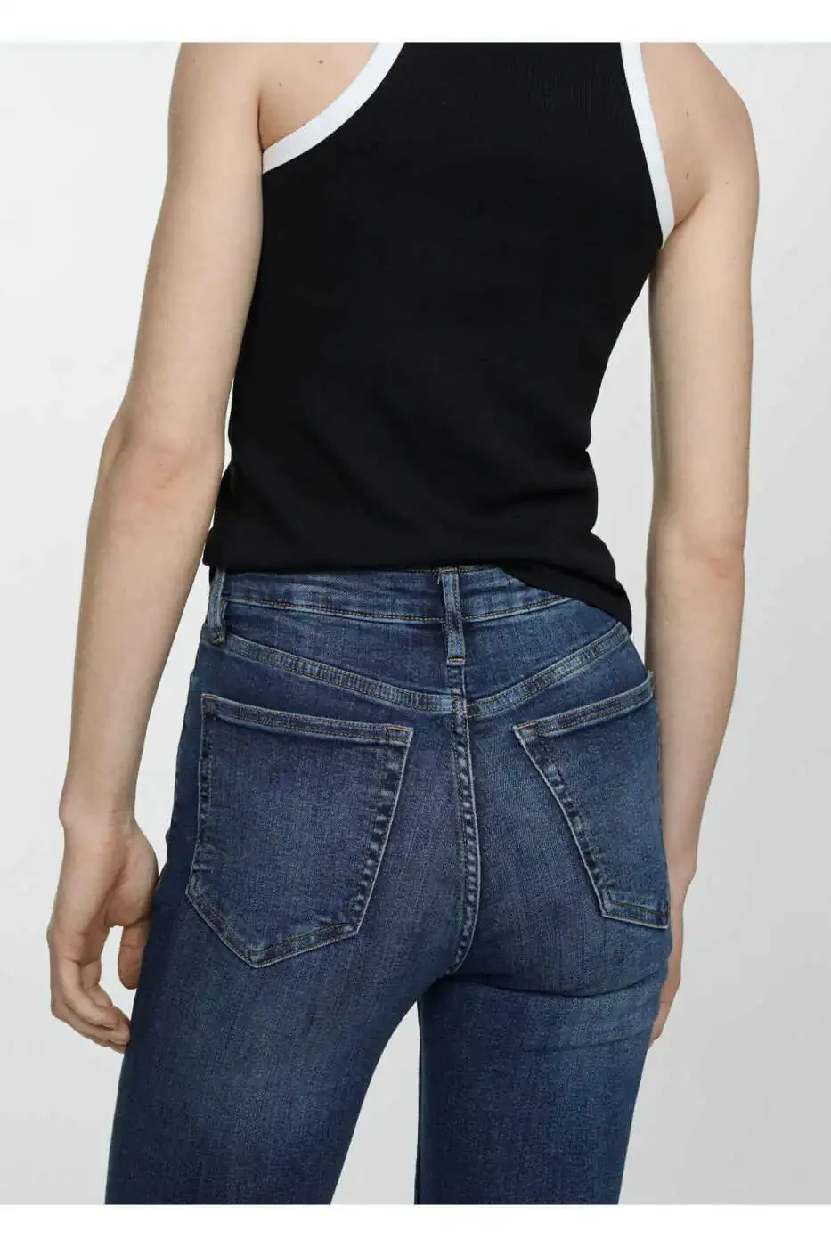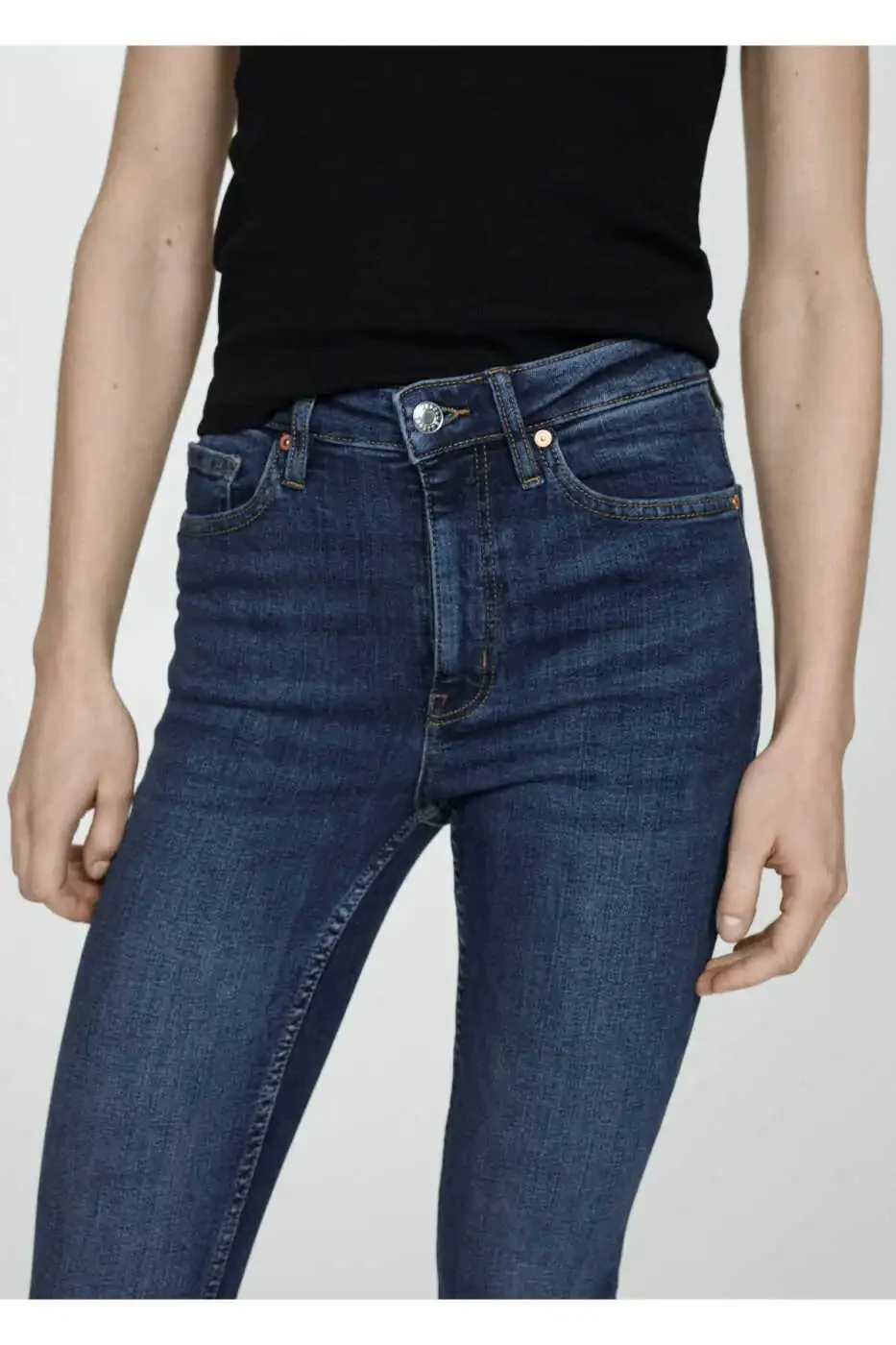 To'q ko'k rangli denim, ayollar jinsi, qulay, nafis, oddiy o'lcham, bir xil naqsh, oddiy bel