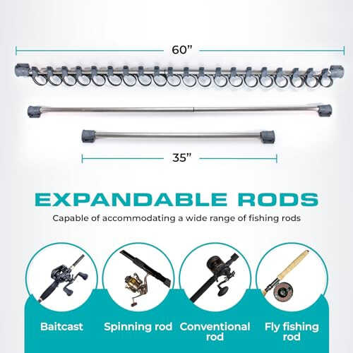 Çok Amaçlı Harika: Patentli olta takımı saklama çözümü R RODLOK, hem ev hem de araba düzenleme ihtiyaçları için çok yönlü bir çözümdür. Arabanızda veya SUV'unuzda balıkçılık malzemelerini, askıda giysileri ve diğer aletleri güvenle taşıyın ve diğer eşyalar için yer açın. Sınırsız Kullanım Seçenekleri: Evde garaj saklaması, bahçe aletleri saklaması ve kulübe düzeni için mükemmeldir. Ayrıca, ultra hafiflerden ağır modellere kadar olta takımlarınızı ve ekipmanınızı kolayca saklamak ve korumak için de kullanabilirsiniz. Genişletilebilir ve Güvenilir: Çeşitli balıkçılık aksesuarları için geniş bir alan sağlayan, kolayca 35 inç'ten 60 inç'e kadar uzanır. 6 adet olta için (6) çift aksesuarla birlikte gelir. 20'den fazla olta için daha fazlasını ekleyin. Sadece balıkçılık ekipmanı için değil - giysiler, süpürge, elektrikli süpürge ve daha fazlası için kullanın Özelleştirilebilir ve Kurulumu Kolay: Bu olta tutucuyu duvara veya tavana zahmetsizce dikey veya yatay olarak takın. Çabuk açılan klipsler, duvardan araca geçişi kolaylaştırarak dağınıklıksız saklama seçenekleri sunar Birinci Sınıf Dayanıklılık: Birinci sınıf paslanmaz çelik, dayanıklı TPEE termoplastik ve sağlam kauçuk bileşenlerden üretilmiştir, 140 lb'ye kadar balık malzemelerine dayanacak şekilde tasarlanmıştır. Aşırı sıcaklıklara ve hatta kazara düşmelere dayanabilir