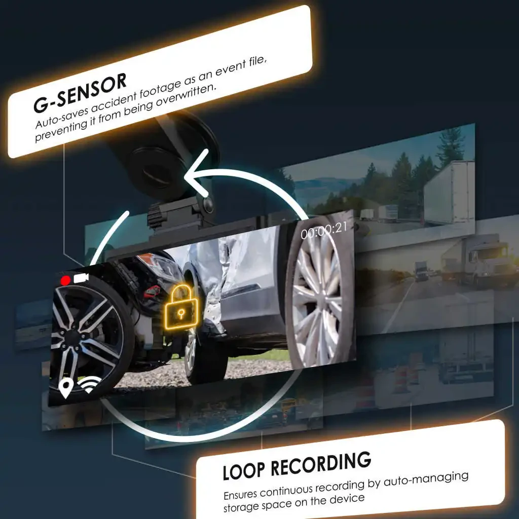 Triple Channel Dash Cam, 2.5K Front Camera, 1080p Rear and Cabin Cameras, Wi-Fi, GPS, Parking Mode, G-Sensor
