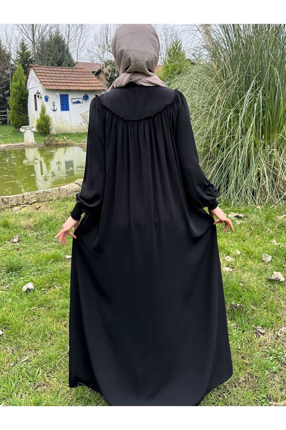 The Rabia Ferace offers a stylish and elegant design that meets the needs of the modern woman. Its carefully selected fabrics provide a comfortable wearing experience, while its elegant posture will make you stand out in any environment. The wide and flowing structure of the Ferace wraps your body, giving you freedom and comfort. At the same time, its elegant details and modern cut will complement your style.