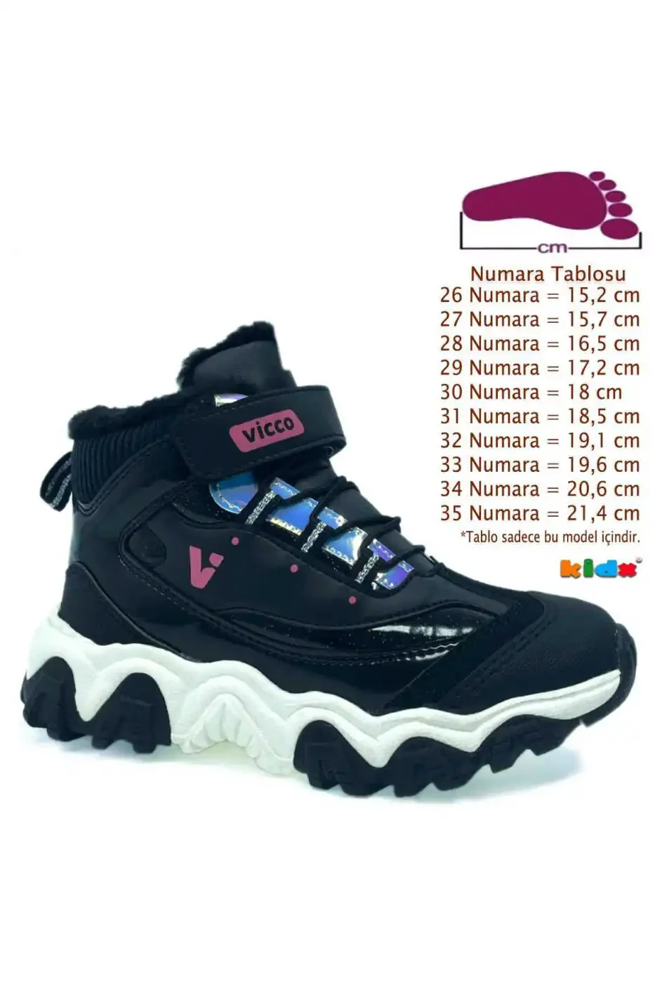 Қизингизнинг қиш ойларида замонавий ва илиқ юришини таъминлайдиган Radus Ll ички жунли енгил тагли ортопедик қиз бола ботинкаси (қора ранг) билан танишинг! Юқори сифатли материаллардан тайёрланган бу ботинка ҳам замонавий кўриниши, ҳам яратиб берадиган қулайлиги билан ажралиб туради. Болангизнинг оёқ саломатлигини биринчи ўринга қўйган ортопедик дизайни билан узоқ муддатли фойдаланишда ҳам қулайликни таъминлайди. Сийқаланмаслик ва совуққа чидамли енгил табани туфайли қизингиз кун бўйи ишончли ҳаракат қила олади. Сувни ўтказмайдиган ташқи юзаси ва юмшоқ жунли ички астарли қопламаси эса совуқ кунларда оёқларини илиқ ва қуруқ сақлайди. Radus Ll ички жунли енгил тагли ортопедик қиз бола ботинкаси (қора ранг) Ўзбекистонда ишлаб чиқарилган бўлиб, болангизнинг оёқларининг соғлом ривожланишини қўллаб-қувватлайди. Замонавий лак деталлари билан қизингизнинг ҳар қандай кийимига мукаммал мос келади. Тўғри рақамини танлаш учун, илтимос, маҳсулот расмларидаги рақам жадвалини кўриб чиқинг. Сонли миқдорда захирамиз мавжуд, бу имкониятдан фойдаланинг!