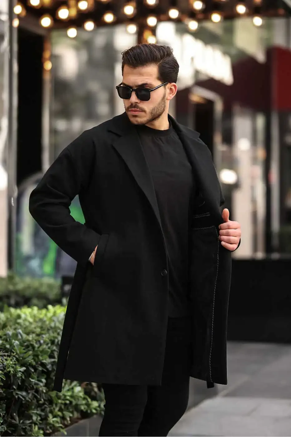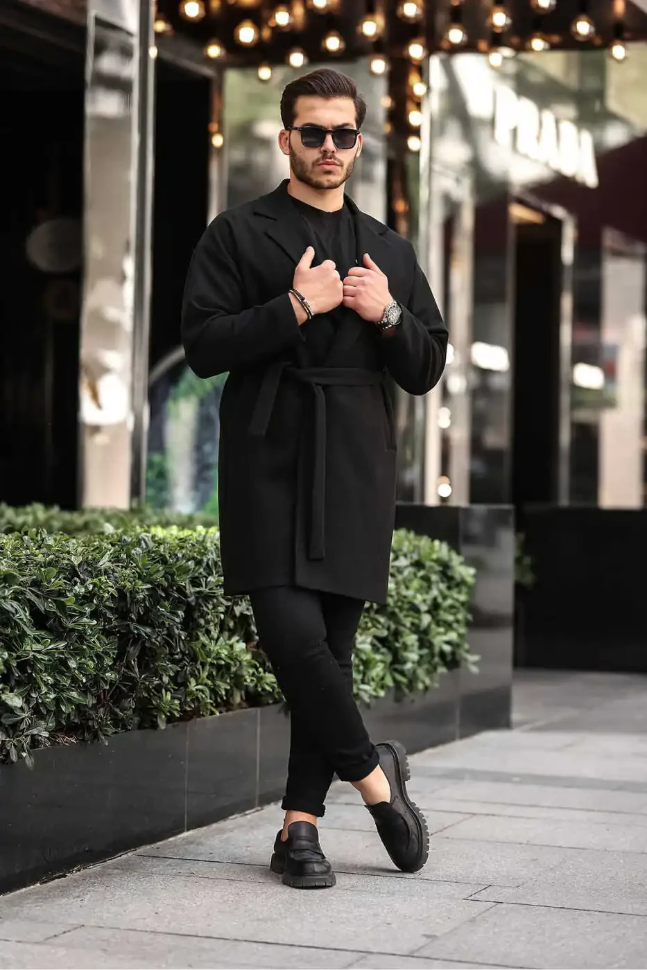 Дополните свой стиль мужским пальто из кашемира с поясом свободного кроя и оставайтесь в тепле и элегантности в холодные зимние дни!