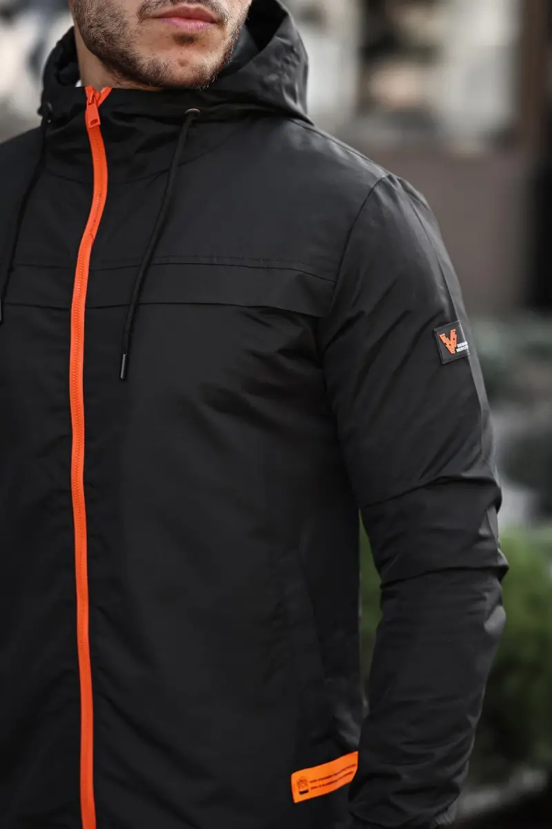 suv o'tkazmaydigan, mavsumiy, fermuarli, kapyushonli, qora, PLDP 2920, kurtka, rangli fermuar, mato, chiroyli
