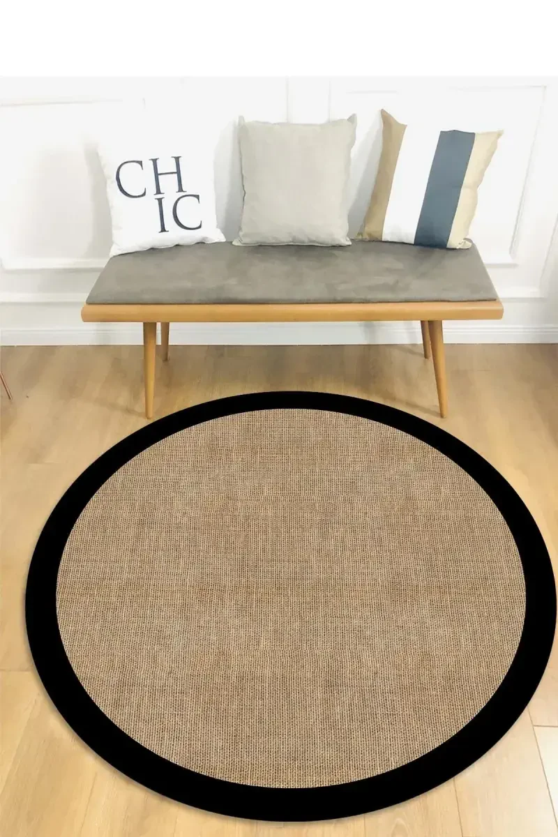 Raqamli Sirpanmas Yuvish Mumkin Qora Ramkali Jyut Ko'rinishli Dumaloq Mehmonxona Gilami Oshxona Gilami Paspas uslub, bardoshlilik va amaliylikni birlashtirgan ajoyib tanlovdir.