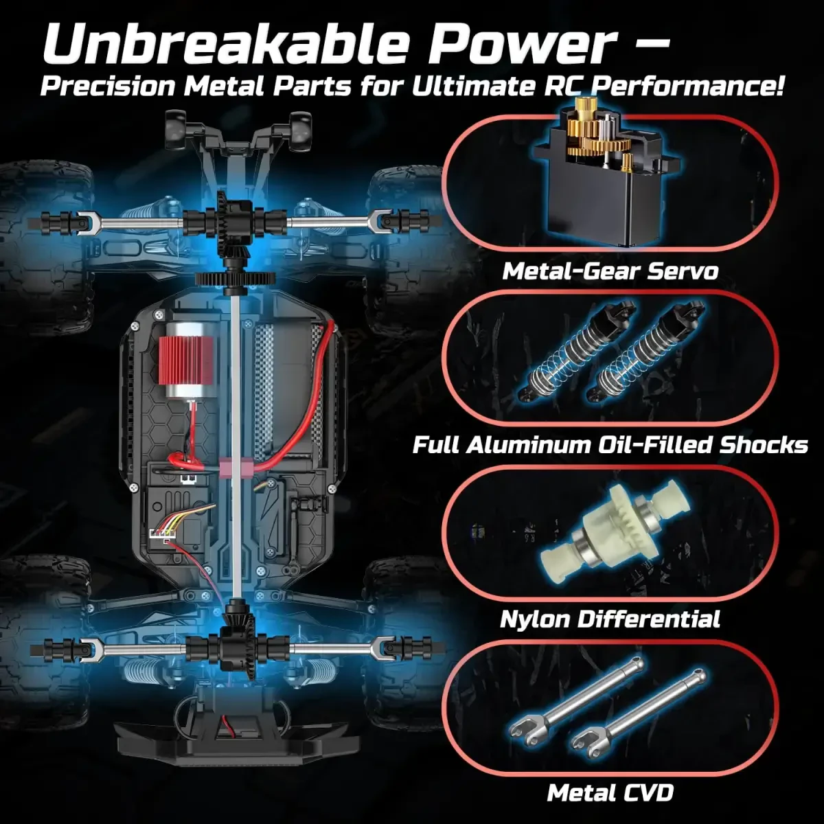 RC Car 1/16 High Speed Remote Control Car is a 4WD (four-wheel drive) remote-controlled vehicle designed for both children and adults, offering an exciting and high-performance off-road experience. This RC truck is ideal for adrenaline-fueled races and challenging terrain conditions thanks to its powerful 380 high-speed motor that can reach speeds of over 30+ MPH (approximately 48+ km/h). Whether you're a beginner or an experienced RC enthusiast, this vehicle offers a driving experience that will satisfy you. One of the most notable features of the product is the two rechargeable batteries that come with it. This allows you to enjoy a total of 40+ minutes of uninterrupted driving pleasure, with 20+ minutes on a single charge. This is a significant advantage compared to other high-speed RC monster trucks on the market and doubles your playtime. The 2.4GHz full-scale synchronous remote control system makes the RC Car 1/16 easy and enjoyable to control. Proportional throttle and steering control are offered with 10 different levels of adjustable sensitivity. This feature allows you to perfectly control your vehicle in corners, make flawless maneuvers on rough terrain, and adjust your speed as you wish. Whether you use precise driving techniques or just speed for fun, this RC truck gives you the control you need. The durability of the RC Car 1/16 cannot be ignored. The fully enclosed metal heat sink prevents the motor from overheating, extending its life. Damped metal shock absorbers prevent damage from unexpected drops or rough terrain. This robust construction guarantees that your vehicle will run smoothly for a long time and provide you with uninterrupted fun. In short, the RC Car 1/16 High Speed Remote Control Car offers a unique RC experience with its high speed, long battery life, precise control and durable construction. This RC truck, which is a perfect gift option for both children and adults, will allow you to have unforgettable moments in the open air.