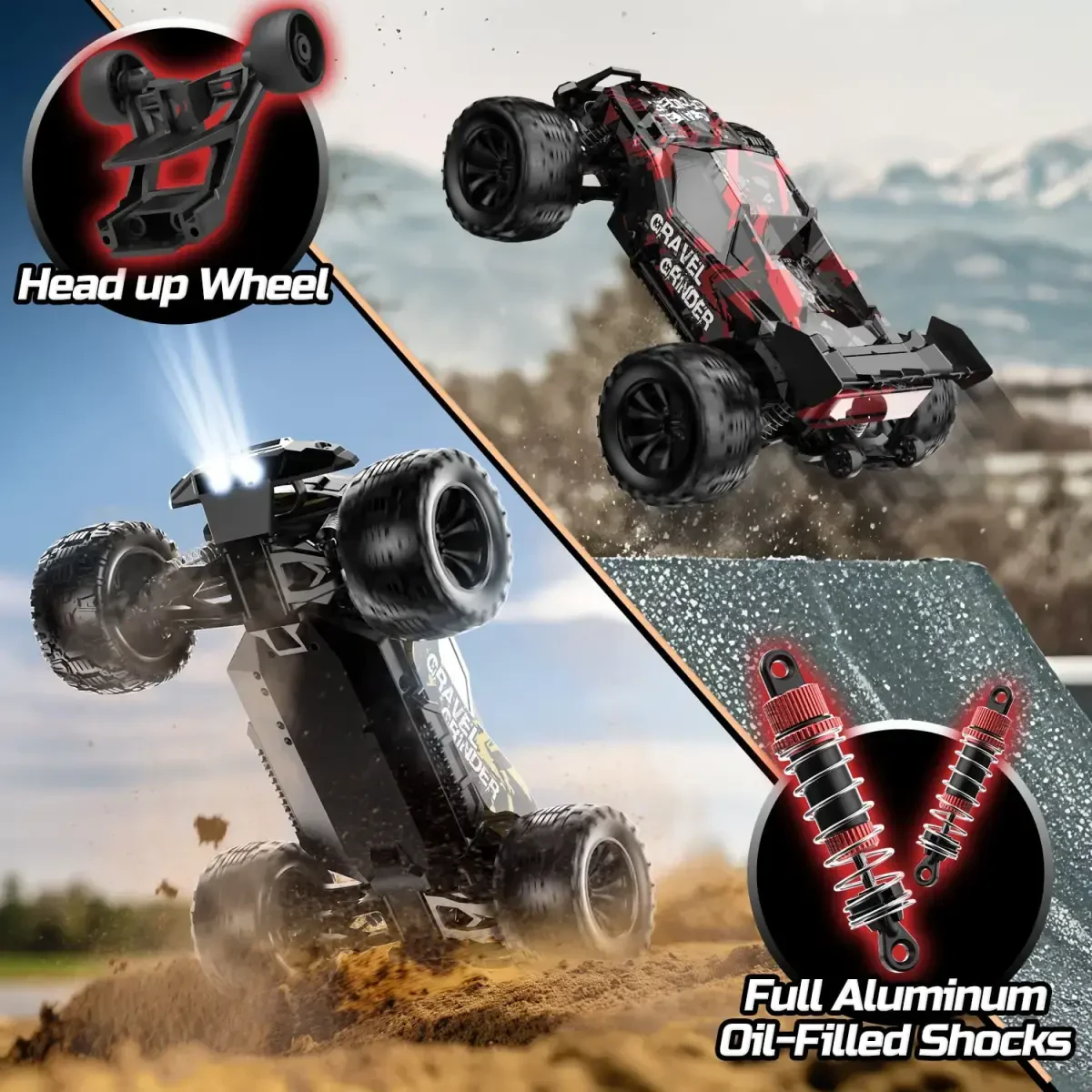 RC Car 1/16 High Speed Remote Control Car - bu bolalar va kattalar uchun mo'ljallangan, hayajonli va yuqori unumdorlikka ega bo'lgan off-road tajribasini taqdim etadigan 4WD (to'rt g'ildirakli) masofadan boshqariladigan mashinadir. Ushbu RC yuk mashinasi 30+ MPH (taxminan 48+ km/soat) dan yuqori tezlikka erisha oladigan kuchli 380 yuqori tezlikli motori tufayli adrenalin bilan to'la poygalar va qiyin er sharoitlari uchun idealdir. Siz boshlang'ichmisiz yoki tajribali RC ixlosmandimisiz, bu mashina sizni qoniqtiradigan haydash tajribasini taqdim etadi. Mahsulotning eng diqqatga sazovor xususiyatlaridan biri unga hamroh bo'lgan ikkita qayta zaryadlanuvchi batareyadir. Shu tarzda, bitta zaryad bilan 20+ daqiqa, jami 40+ daqiqagacha uzluksiz haydashdan bahramand bo'lishingiz mumkin. Bozorda mavjud bo'lgan boshqa yuqori tezlikli RC yirtqich yuk mashinalariga nisbatan bu muhim afzallikdir va o'yin vaqtingizni ikki baravar oshiradi. 2,4 GHz to'liq o'lchamli sinxron masofadan boshqarish tizimi RC Car 1/16 ni boshqarishni oson va yoqimli qiladi. Proportsional gaz va rul boshqaruvi 10 xil nisbatda sozlanishi sezuvchanlik bilan ta'minlanadi. Ushbu xususiyat tufayli siz mashinangizni burilishlarda mukammal tarzda boshqarishingiz, notekis erlarda benuqson manevrlar qilishingiz va tezligingizni xohlaganingizcha sozlashingiz mumkin. Siz nozik haydash usullaridan foydalanasizmi yoki shunchaki zavqlanish uchun tezlikni oshirasizmi, bu RC yuk mashinasi sizga kerakli boshqaruvni ta'minlaydi. RC Car 1/16 ning chidamliligini ham e'tibordan chetda qoldirib bo'lmaydi. To'liq yopiq metall issiqlik qabul qilgich motorning haddan tashqari qizib ketishining oldini oladi va uning umrini uzaytiradi. Namlangan metall amortizatorlar kutilmagan yiqilishlar yoki notekis erlar natijasida kelib chiqadigan zararni oldini oladi. Ushbu mustahkam tuzilma sizning mashinangiz uzoq vaqt davomida muammosiz ishlashini va sizga uzluksiz ko'ngil ochishni ta'minlaydi. Muxtasar qilib aytganda, RC Car 1/16 High Speed Remote Control Car o'zining yuqori tezligi, uzoq batareya muddati, nozik boshqaruvi va bardoshli tuzilishi bilan noyob RC tajribasini taqdim etadi. Bolalar va kattalar uchun ajoyib sovg'a bo'lgan ushbu RC yuk mashinasi ochiq havoda unutilmas lahzalarni o'tkazishingizga imkon beradi.