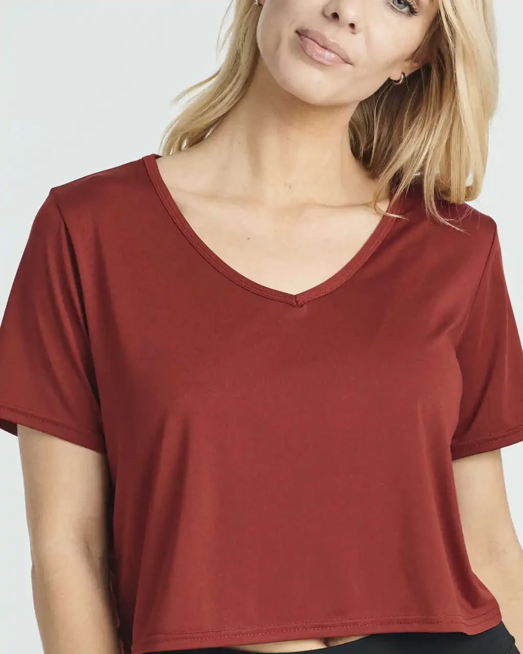 Real Essentials 5 Pack: Women's Dry-Fit Short Sleeve V-Neck Crop Top Boxy Athletic Tee for maximum comfort and style in your daily sporting activities. This 5-pack offers stylish and practical options for different days. Breathable fabric structure prevents sweating, allowing you to move freely with every movement. The V-neck detail and short sleeve design provide a modern look while prioritizing comfort. The boxy cut perfectly drapes over every shape of your upper body, providing an ideal fit. Its quick-drying feature guarantees you feel dry and comfortable even after your activity. These t-shirts, suitable for everything from the gym to daily activities, reflect your style while supporting your performance. 5 different color options maximize your combination freedom. Experience your sports spirit anytime, anywhere with Real Essentials 5 Pack: Women's Dry-Fit Short Sleeve V-Neck Crop Top Boxy Athletic Tee, which will make you feel strong and stylish.