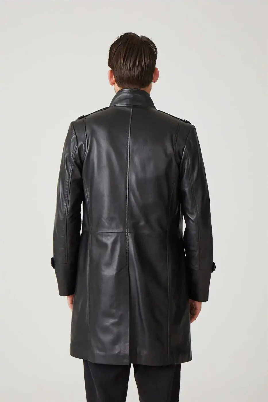 The Black Darryl Men's Buttoned Lined Epauletted Slitted Stand Collar Slim Fit Genuine Leather Coat is a sophisticated and elegant piece of outerwear that offers men a modern style. Made of high-quality genuine leather, this coat is an investment that you can wear for years to come.