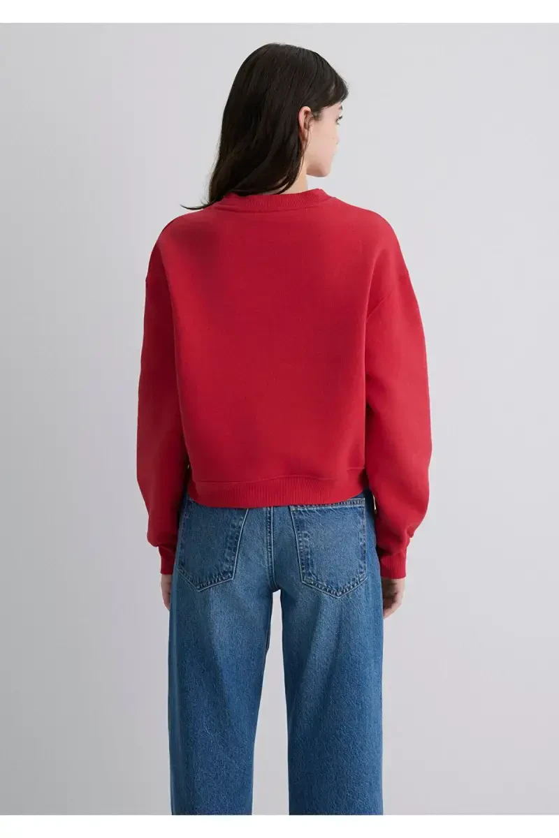 You can easily choose the Logo Printed Red Crop Sweatshirt for your daily activities, meetups with friends, or special occasions.