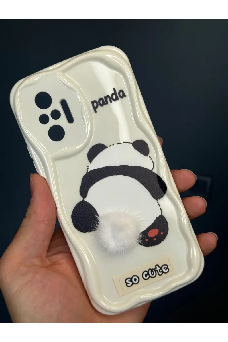 Redmi Note 10 Pro Kılıf Tasarımlı Desenli Kamera Korumalı Panda Beyaz Püsküllü Silikon Kapak-Cici Panda