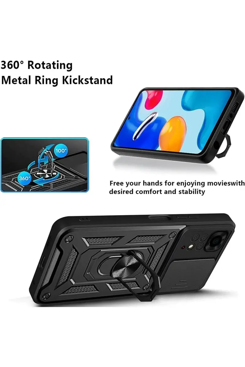Redmi Note 11 Pro/12 Pro 4G Kılıf Kamera Korumalı Sürgülü Yüzüklü Armor Military Tank-Raptor