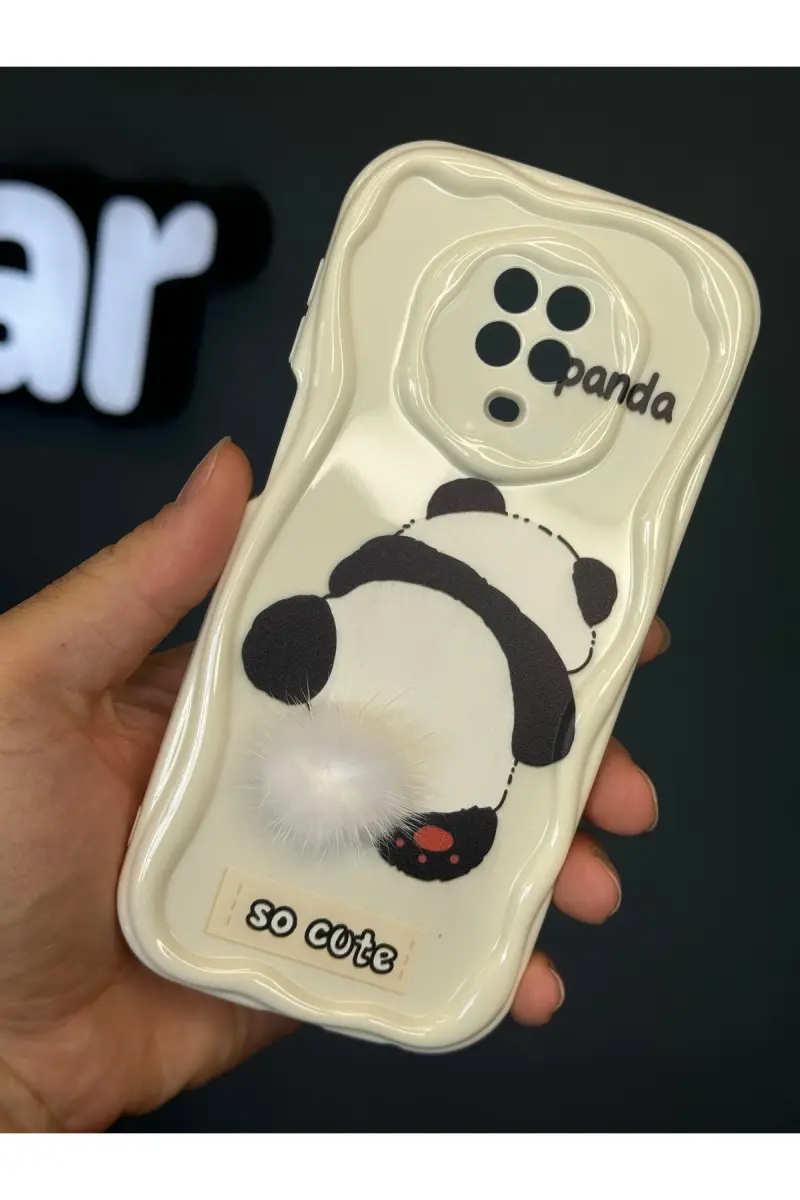 Redmi Note 9 Pro/9S Kılıf Tasarımlı Desenli Kamera Korumalı Panda Beyaz Püsküllü Silikon Kap-Cici Panda