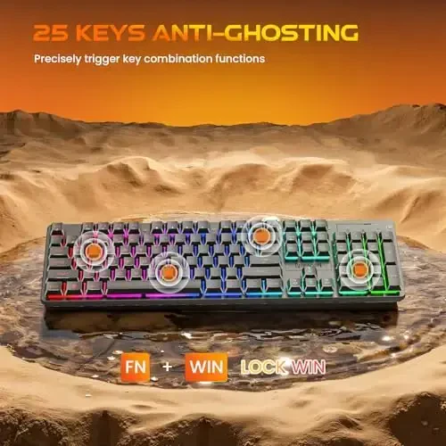 Redragon K521KS Wireless Gaming Keyboard, Tri-Mode BT/2.4G/USB-C RGB Mechanical Feeling Keyboard with Multimedia Keys, 4000mAh Battery, Anti-Ghosting, Compatible with PC.