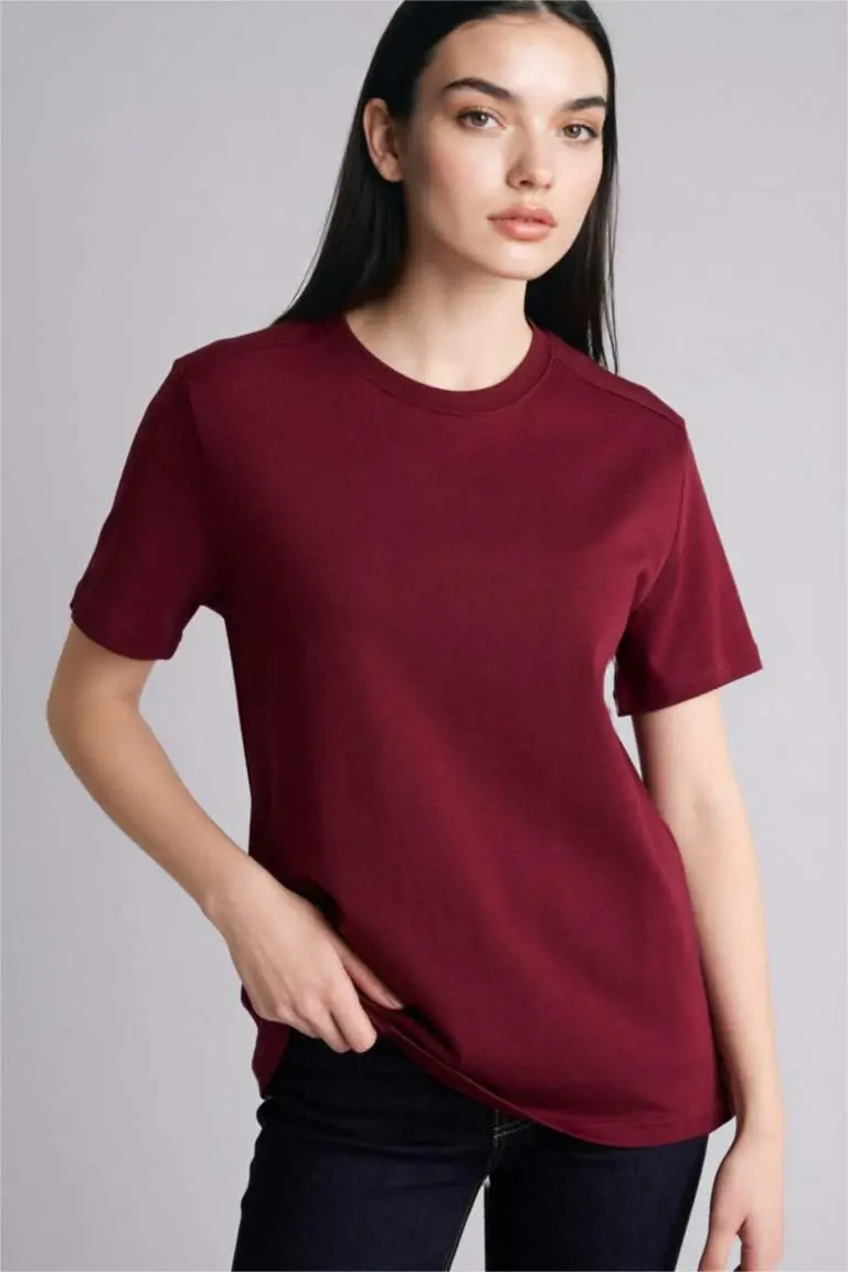 Pamuklu Bisiklet Yaka Tişört | Regular Fit Premium Kalite