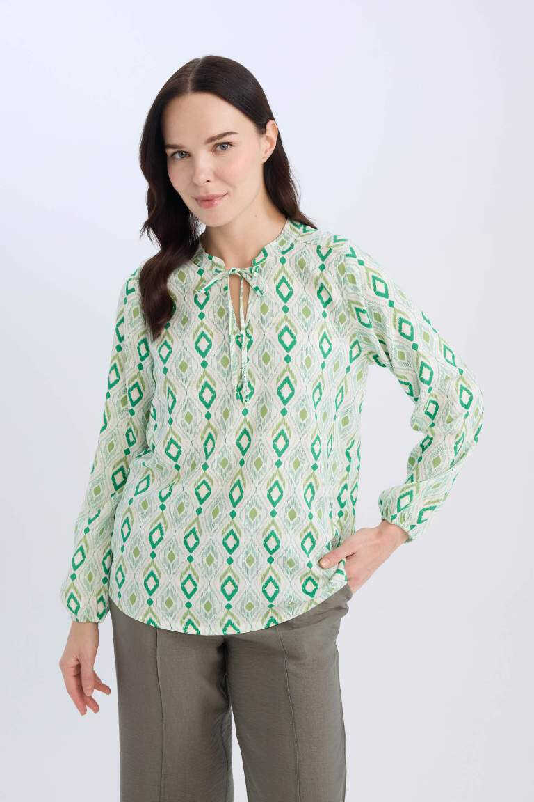 Блузка с длинными рукавами regular fit с завязками на воротнике и узором - светло-зеленая, с современным и стильным дизайном, станет одной из самых любимых вещей в вашем гардеробе. Успокаивающий оттенок светло-зеленого цвета в сочетании с узорчатой текстурой блузки создает неповторимый образ. Деталь с завязками на воротнике добавляет блузке элегантности и позволяет отразить ваш личный стиль, используя различные способы завязывания. Длинные рукава согреют вас в прохладную погоду, а легкая и дышащая ткань блузки обеспечит комфорт в течение всего дня. Крой regular fit обеспечивает удобную посадку, не облегая тело. Эту блузку можно легко сочетать с джинсами, юбками или тканевыми брюками, чтобы вы могли сохранить свой стильный вид как в повседневной жизни, так и на особых мероприятиях. Эта блузка всегда будет правильным выбором, будь то в офисе или на встрече с друзьями. Вы можете создавать разные стили, обогащая ее аксессуарами, и получать привлекательный внешний вид в любой обстановке. Благодаря качественной ткани, обеспечивающей долговечность, эта блузка долго сохранит свое место в вашем гардеробе, не выцветая и не теряя форму. Эту блузку можно носить в любое время года, но особенно она станет вашей любимой весной и осенью. Эта блузка, сочетающая в себе элегантность и комфорт, покорит сердца стильных женщин. Это идеальный выбор, чтобы обновить свой гардероб и привнести в свой стиль новое дыхание. Наслаждайтесь комфортом и стилем с этой блузкой. Эта блузка, каждая деталь которой отличается заботой и качеством, всегда заставит вас чувствовать себя особенной. Помните, стиль - это не только одежда, но и то, как ее носят. Эта блузка повысит вашу уверенность в себе и заставит вас сиять в любой обстановке. Эта блузка, сочетающая в себе энергию светло-зеленого цвета и элегантность узоров, всегда будет на шаг впереди. Эта блузка - не просто одежда, а способ самовыражения. Это прекрасная возможность выразить свой стиль и себя. Она легко сочетается с другими вещами в вашем гардеробе и предлагает вам неограниченные возможности для комбинирования. Это идеальный выбор для женщин, которые ищут элегантность и комфорт в одном. С этой блузкой вы почувствуете себя особенной и уникальной.