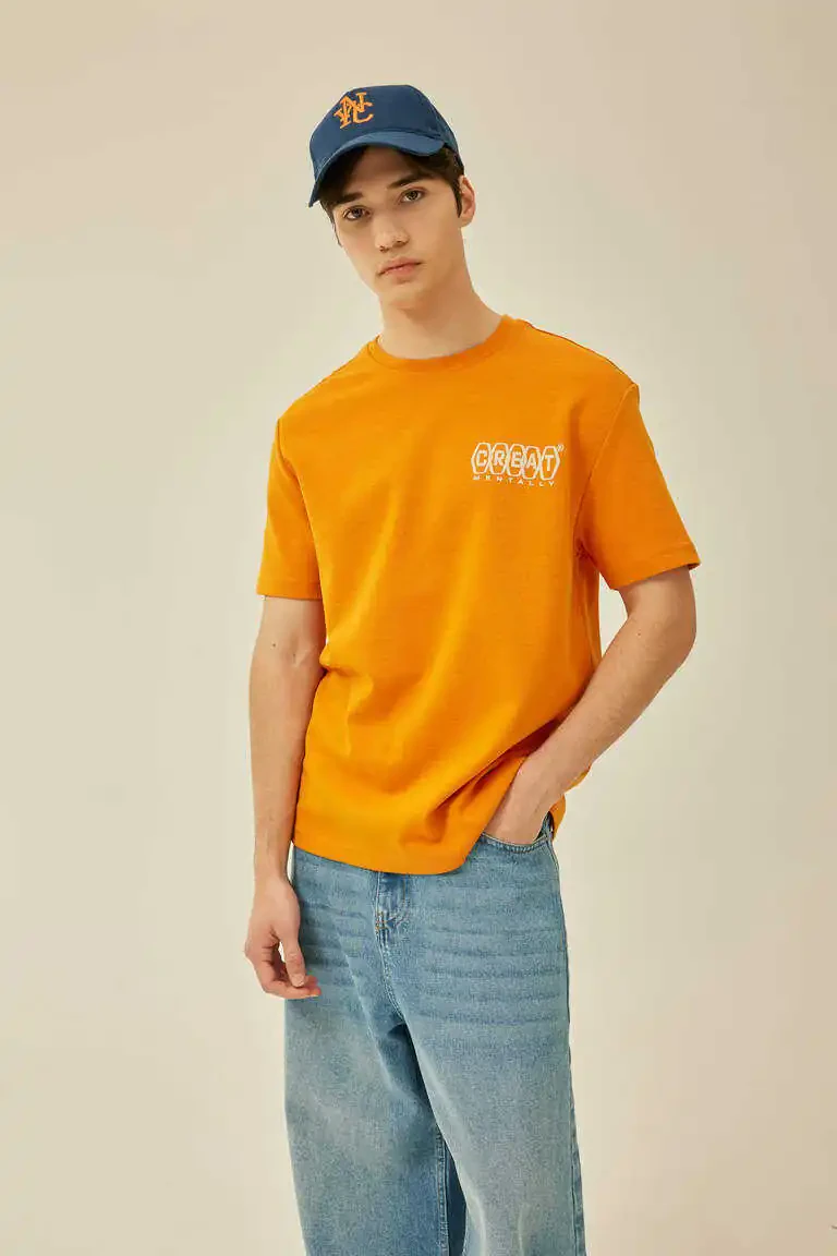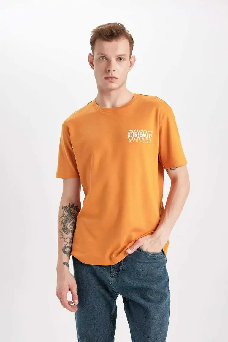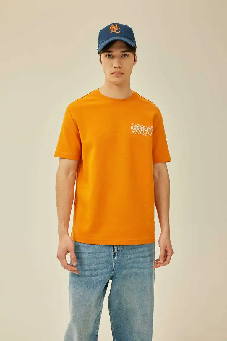 t-shirt, crew neck, back printed, short sleeve, heavy fabric, regular fit, orange, men's t-shirt, summer t-shirt, casual t-shirt