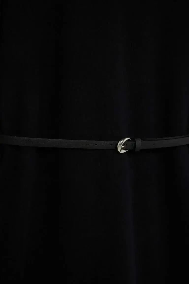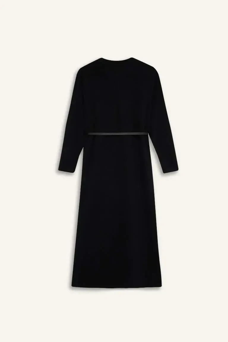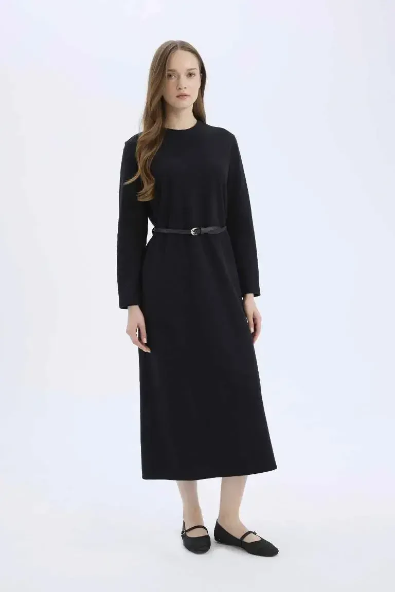 Experience elegance and comfort with the Regular Fit Crew Neck Long Sleeve Belted Ribbed Knit Maxi Modest Dress. This special design dress is an ideal option for your daily wear. Reflecting the nobility of black, this dress allows you to have a stylish look thanks to its ribbed knit fabric and helps you feel comfortable all day long. The regular fit cut gently reveals your body lines while not restricting your freedom of movement. The crew neck detail adds a modern and elegant touch to the dress, while the long sleeve design offers an option that you can prefer especially in cool weather. One of the most striking features of the dress is the belt detail. The belt helps you achieve a more fit look by emphasizing your waist and adds a different touch to the dress. Thanks to the belt, you can combine the dress in different ways and reflect your own style. The maxi length offers an ideal length for women who prefer modest wear. This dress, which you can easily use in both stylish invitations and daily activities, will be one of the indispensable pieces of your wardrobe. The fabric content of the dress consists of 29% cotton, 3% viscose and 68% polyester. This special blend increases the durability of the fabric while providing a soft and comfortable touch. Thanks to its cotton structure, your skin breathes and you feel comfortable all day long. Viscose adds a slight shine and fluidity to the fabric, while polyester makes it resistant to wrinkles. In this way, your dress always looks well-groomed and stylish. Regular Fit Crew Neck Long Sleeve Belted Ribbed Knit Maxi Modest Dress is offered to the liking of women and is produced in accordance with the Recycle Fabric Control system. This shows that the product is produced in an environmentally friendly way. The dress is an ideal choice for adults and is designed to complete your daily elegance. This dress, which you can easily use in the winter season, is a candidate to be one of the most loved pieces of your wardrobe. Try the product at home, and if you experience a size mismatch, you can exchange it free of charge at our nearest store. In this way, you can make your shopping experience even more enjoyable. Don't miss out on this special dress that combines elegance, comfort and quality!