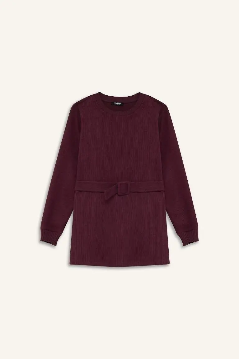 Regular Fit Crew Neck Soft Furry Interior Thessaloniki Fabric Long Sleeve Tunic - Burgundy is a special design that offers both elegance and comfort. The soft fur on the inner surface that will keep you warm in cold weather ensures that you are comfortable all day long. The tunic offers a long-lasting use thanks to its modern cut and quality fabric. The crew neck helps you achieve an elegant and simple look, while the burgundy color will add elegance to your elegance. The unique texture of the Thessaloniki fabric adds a different dimension to the tunic and distinguishes it from other tunics. This tunic, which you can prefer both for daily use and for more special moments, is a candidate to be one of the most popular pieces of your wardrobe. Whether you create a sporty combination with jeans or catch a more formal atmosphere with stylish trousers, this tunic will complement your style in any case. The regular fit cut of the model does not restrict your freedom of movement by fitting the body perfectly. Its long-sleeved design protects you in cool weather and stands out as a stylish detail. This tunic not only keeps you warm, but also allows you to reflect your style. The burgundy color can be easily combined with different colors and can be worn in all seasons. Thanks to its high-quality material structure, it stays like the first day for a long time and does not wear out easily. Its soft furry interior gently touches your skin and provides a comfortable feeling throughout the day. Regular Fit Crew Neck Soft Furry Interior Thessaloniki Fabric Long Sleeve Tunic - Burgundy is a stylish and useful piece that should be in every woman's wardrobe. It is an ideal choice to stay warm and not compromise on your style on cold winter days. The quality of the fabric and the care of the workmanship distinguish this tunic from others and ensure that it becomes an indispensable part of your wardrobe for many years. This tunic, which can adapt to all kinds of environments, both completes your daily elegance and accompanies you on your special days. Whether you wear it alone or combine it with a jacket or coat, it will highlight your style in any case. Regular Fit Crew Neck Soft Furry Interior Thessaloniki Fabric Long Sleeve Tunic - Burgundy is an excellent option for women who embrace both modern and classic styles.