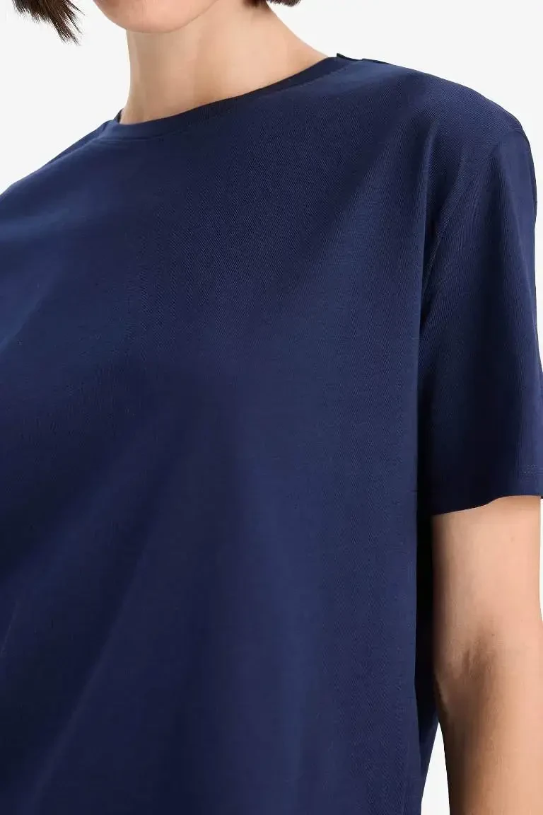 Удобная и стильная базовая футболка с круглым вырезом и короткими рукавами из гладкого трикотажа стандартного кроя станет незаменимой вещью в вашем гардеробе. Эту футболку темно-синего цвета можно легко сочетать с любым нарядом, поэтому ее можно смело надевать как для повседневной носки, так и для занятий спортом или встреч с друзьями. Хлопковая ткань позволяет коже дышать и обеспечивает комфорт в течение всего дня, а благодаря своей воздухопроницаемости эта футболка станет вашим фаворитом, особенно в жаркую погоду. Эта стильная и простая футболка, подходящая для любого стиля, является одной из основных вещей в вашем гардеробе. Высококачественная трикотажная ткань обеспечивает долговечность, а устойчивость к выцветанию сохраняет ее яркость, как в первый день. Стандартный крой создает более удобный силуэт, не облегающий тело. Круглый вырез придает футболке современный вид, а короткие рукава помогают сохранять прохладу летом. Сочетайте ее с шортами или джинсами — эта футболка всегда обеспечит вам стильный и комфортный вид. Благородный темно-синий цвет легко сочетается с любым нарядом, а базовый дизайн позволяет выразить свой уникальный стиль с помощью различных аксессуаров и одежды. Эта футболка не только обеспечивает стильный внешний вид, но и позволяет чувствовать себя комфортно и свободно в течение всего дня. Благодаря качественным материалам и тщательному исполнению это вложение, которое останется в вашем гардеробе на долгие годы. Носите ли вы ее отдельно или под пиджак или рубашку, эта футболка всегда дополнит ваш образ. Это идеальный выбор для тех, кто хочет быть одновременно комфортным и стильным в суете повседневной жизни.