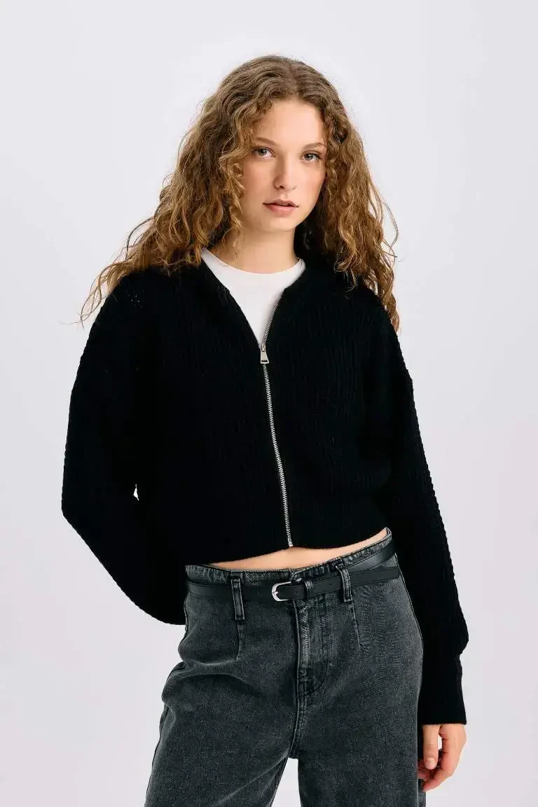 Triko Hırka: Kapüşonlu, Fermuarlı, Siyah | Regular Fit Rahatlık
