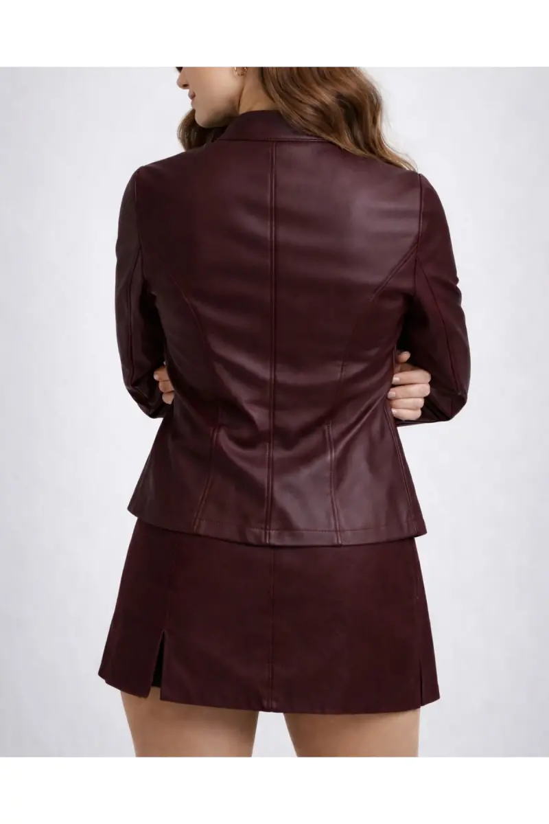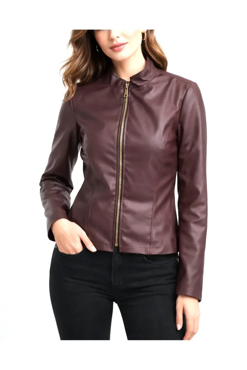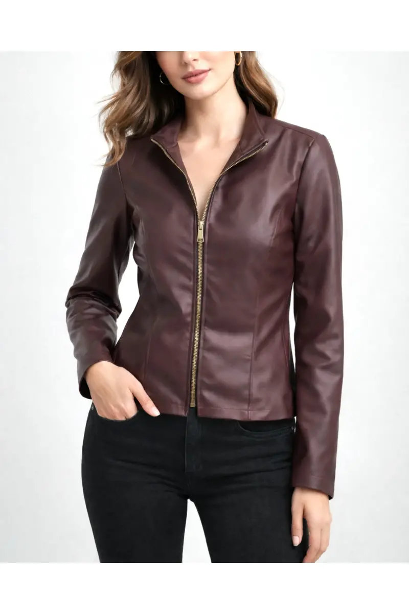 REGULAR FİT KISA BORDO DERİ CEKET-Bordo989