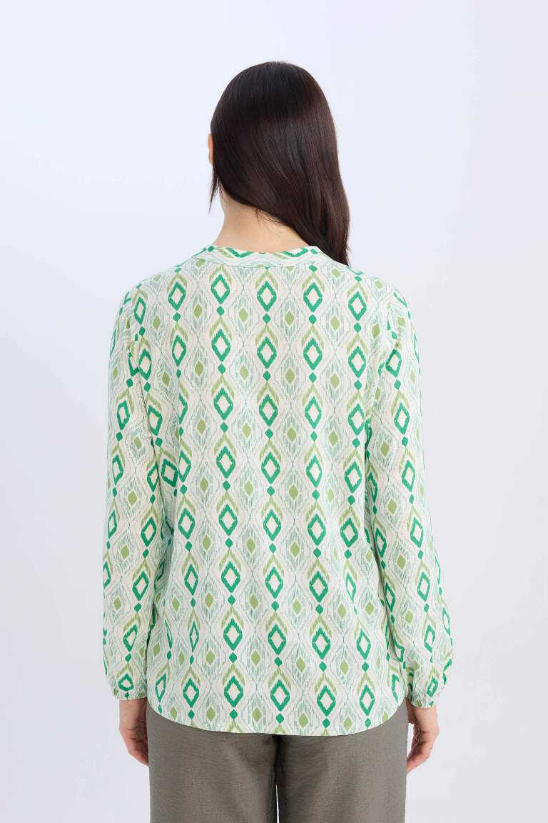 Designed with a regular fit for comfort, and featuring a laced neckline and patterned design that blend elegance, our long-sleeved blouse is poised to become an indispensable part of your wardrobe. Its light green color embodies nature and freshness, ensuring you'll stand out in any setting. Whether for everyday wear or a special event, you can create different combinations to reflect your style.Product DescriptionThe Regular Fit Laced Neckline Patterned Long Sleeve Blouse - Light Green stands out with its modern and stylish design, making it one of the most beloved pieces in your wardrobe. The soothing tone of light green combines with the blouse's patterned texture to offer a unique look. The laced neckline detail enhances the blouse's elegance while allowing you to reflect your personal style with different tying options. The long-sleeved design keeps you warm in cool weather, while the blouse's lightweight and breathable fabric ensures all-day comfort. Thanks to its regular fit, it offers a comfortable, non-restrictive fit. This blouse can be easily paired with jeans, skirts, or dress pants, so you can maintain your elegance in both daily use and special events. Whether you're at the office or meeting friends, this blouse will always be the right choice. You can create different styles by enriching it with accessories, achieving a striking look in any environment. Thanks to its high-quality fabric, this blouse offers long-lasting use, retaining its colors and shape for a long time in your wardrobe. Wearable in any season, this blouse will be your favorite, especially in spring and autumn. Offering elegance and comfort together, this blouse will appeal to stylish women. It is an ideal choice to refresh your wardrobe and bring a new breath to your style. Enjoy being both comfortable and stylish with this blouse. This blouse, which contains care and quality in every detail, will always make you feel special. Remember, style is not just about clothes, but also about how they are worn. This blouse will increase your confidence and make you shine in any environment. This blouse, which combines the energy of light green color and the elegance of patterns, will always take you one step ahead. This blouse is not just clothing, but also a form of expression. It is a great opportunity to reflect your style and express yourself. It will easily match other pieces in your wardrobe and offer you unlimited combination possibilities. It is the perfect choice for women looking for elegance and comfort together. You will feel special and unique with this blouse.Product Features* Regular fit cut* Laced collar detail* Patterned design* Long sleeve* Light green colorAdditional InformationTo ensure the product's longevity, follow the washing instructions on the label. Different color and size options are available. You can combine it with accessories to complete your style.