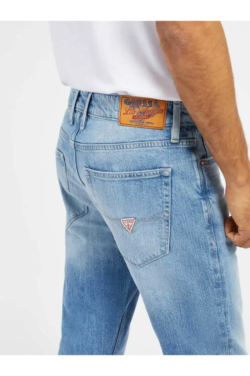 Designed to add a modern touch to your everyday style, the Regular Waist Regular Blue Men's Denim Pants M4RAS2D58M3R8TE_SLIM TAPERED - ECO combines comfort and style. With its Slim Tapered cut, these pants fit your body perfectly, offering freedom of movement while creating a stylish look.