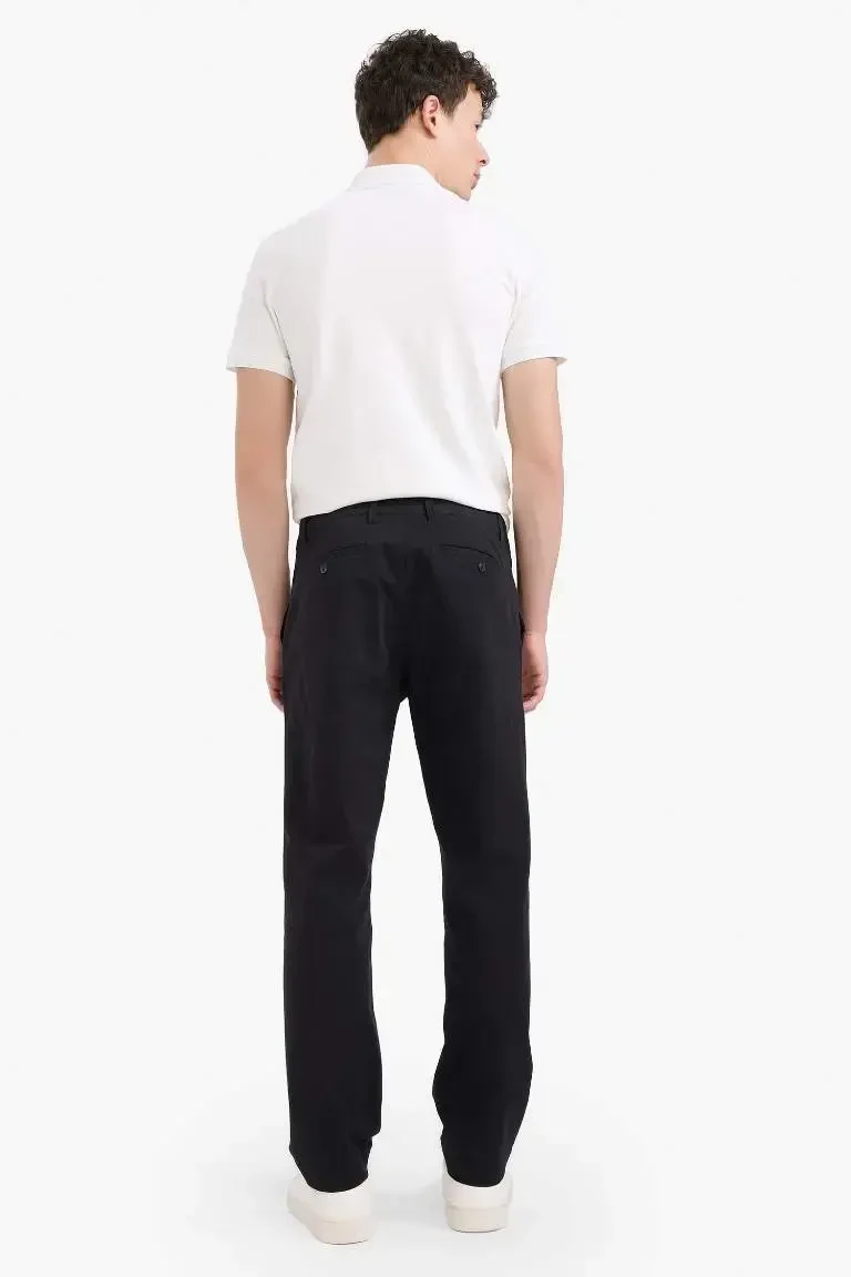 Meet the Regular Fit Normal Cut Summer Straight Leg Chino Canvas Pants, which will be an indispensable part of your wardrobe and offer comfort and elegance together! Whether for your daily activities or more special moments, these pants will accompany you and make you look good at all times. Thanks to its high-quality cotton fabric, it offers a comfortable use all day long, while its normal cut does not restrict your freedom of movement. The straight leg design brings with it easy combinability with both sporty and classic styles.These chino pants stand out with their breathable structure that keeps you cool and fresh, especially in summer. The noble and timeless tone of black provides perfect harmony with all colors and models of outerwear. You can easily reflect your style by combining it with different options such as shirts, t-shirts, polo necks. You are also very free in your choice of shoes; you can achieve a more comfortable and casual look with sneakers, or you can create a more stylish and sophisticated style with loafers or leather shoes.The regular fit cut offers an ideal balance that is not too tight to the body, but not too loose. In this way, both comfort and elegance are found together. The straight leg design of the pants helps you get a fitter look by making your legs look longer. In addition, the durable canvas fabric of the chino pants offers long-lasting use and is resistant to frequent washing.Black chino pants are not only stylish, but also practical. Its pockets allow you to safely carry your phone, wallet and other small items. The button and zipper closure offers easy to put on and take off, while the belt loops allow you to personalize your style with different belts.These chino pants are not just a piece of clothing, but also a lifestyle. It will increase your self-confidence, make you stand out in any environment and will be the most loved piece of your wardrobe. Get ready to elevate your style with Regular Fit Normal Cut Summer Straight Leg Chino Canvas Pants!