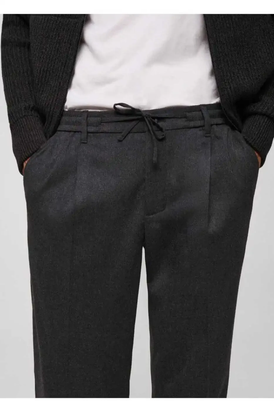 **Regular Fit Pleated Pants with Drawstring**Shipped by **Mango**, these trousers are a stylish addition to your wardrobe, designed to complement your unique style.**Product Features:*** Regular fit* Regular waist* Flannel fabric* Front button detail* Adjustable drawstring waistband* Button closure* Model is 190 cm tall and wears a size 42* Pressed crease detail at front and back**Technical Details:*** Material: 65% polyester, 33% viscose, 2% elastane* Lining pocket material: 65% polyester, 35% cotton* Inseam: 77.4 cm* Outseam: 105.0 cm**Care Instructions:*** Machine wash at a maximum temperature of 30°C* Do not bleach* Iron at a maximum temperature of 110°C* Do not dry clean* Do not tumble dry**Order Information:*** Sold at a discounted price.* More than 10 items are in stock.* A maximum of 10 items can be ordered per order.* Trendyol reserves the right to cancel orders exceeding 10 units.* Free returns are available within 15 days.