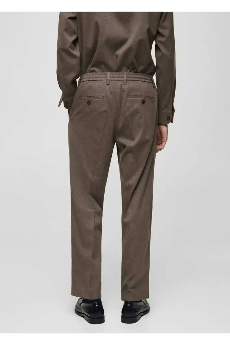 **Regular Fit Pleated Pants with Drawstring**These stylish pants from MANGO's exclusive collection will become a staple in your everyday wardrobe.**Features:*** Regular fit* Regular waist* Flannel fabric* Front button closure* Adjustable drawstring elastic waistband* Button fly* Creased detailing on front and back* Model's height: 190 cm, size: 42* 65% polyester, 33% viscose, 2% elastane* Lining pocket: 65% polyester, 35% cotton* Inseam: 77.4 cm* Side seam length: 105.0 cm**Care Instructions:*** Machine wash at max 30°C* Do not bleach* Iron at max 110°C* Do not dry clean* Do not tumble dryWith over 10 pieces in stock, you can purchase this product at a campaign price. Multiple sellers may sell the same product. Products are ranked based on seller's price, rating, delivery status, promotions, free shipping, fast delivery, stock, and category information. A maximum of 10 pieces of this product can be ordered. Trendyol reserves the right to cancel orders exceeding 10 pieces. This limit does not apply to corporate orders. You can return the product within 15 days for free. Click for more information.