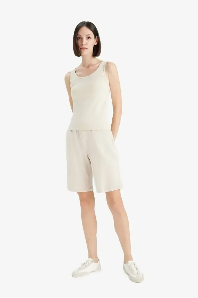 Regular Fit Normal Waist Straight Leg Bermuda Shorts - Sand is an excellent option that offers elegance and comfort together in hot weather. These bermuda shorts are ideal for daily use with their comfortable fit and modern design. The sand color easily adapts to all kinds of combinations and will be one of the most versatile pieces in your wardrobe. The high-quality sweatshirt fabric offers comfort all day long, while its 85% cotton content allows your skin to breathe and minimizes sweating. 15% polyester adds durability to the fabric and offers long-lasting use. This fabric blend helps the shorts maintain their shape and not wrinkle easily, so you always look well-groomed and stylish. The normal waist cut does not restrict your freedom of movement with its body-hugging but not tight structure. The straight leg detail provides a modern and elegant look. Whether you create a daily combination with sneakers or capture a more stylish style with sandals, these bermuda shorts adapt to any environment. Product length measurements have an inner leg length of 24 cm in all sizes from XS to 3XL, which offers an ideal length for women of different heights. In this way, the proportions of the shorts maintain the same elegance in every size. These shorts not only look stylish but also offer practical use. You can easily prefer it in your daily activities, holidays or weekend trips. Regular Fit Normal Waist Straight Leg Bermuda Shorts - Sand is a candidate to be one of the essentials of your wardrobe. Order now and enjoy combining elegance with comfort. Try this product at home and if you experience a size incompatibility (except socks, underwear and jewelry), you can exchange it for free in our store.