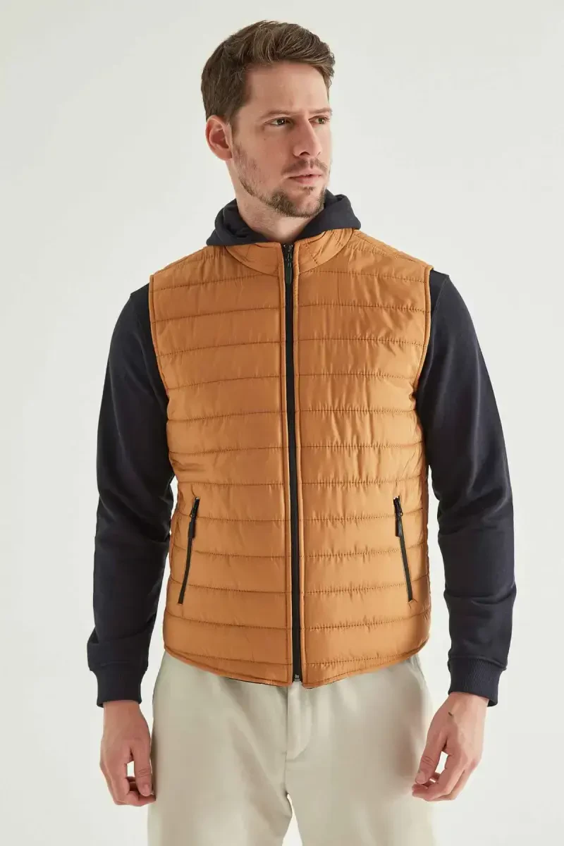 DS Damat Regular Fit Saffron Stand-Up Collar Fiber Filled Seasonal Zippered Padded Vest Jacket is a stylish and functional option designed for men with style. This vest jacket offers ideal use, especially during seasonal transitions, keeping your body warm in cool weather while allowing you to achieve a modern and dynamic look. The saffron color adds a different touch to your combinations, while the regular fit cut offers a comfortable wearing experience throughout the day. The stand-up collar design protects your neck from the cold, and the zippered closure allows you to put it on and take it off easily. High-quality fiber filling provides superior insulation despite being lightweight, keeping you warm. This vest jacket can accompany you not only in daily use but also in outdoor activities and travels. Offering style and comfort together, this product is a candidate to be one of the indispensable pieces of your wardrobe. This vest jacket, produced with DS Damat quality, is made of durable materials for long-lasting use. It is an excellent choice for men who are looking for style and comfort together. The modern design of the product easily adapts to different styles, allowing you to attract attention in any environment. This vest jacket complements your style by harmonizing with both sporty and classic combinations. This product, offered with DS Damat assurance, is an ideal choice for those who are looking for quality and style together. Remember, you can always feel stylish and safe with this special design vest jacket. Suitable for seasonal use, this product can be easily combined with other pieces in your wardrobe and always offers you a modern look. You can prefer this vest jacket especially in autumn and spring months, and it is the best way to reflect your style. This vest jacket, one of DS Damat's original designs, is ready to win the appreciation of stylish men.
