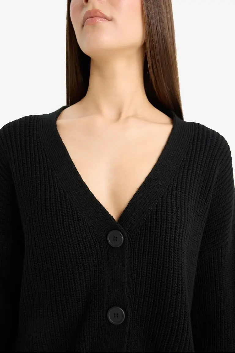 Трикотажный кардиган: Regular Fit V-образный вырез на пуговицах | Черный кардиган мужской