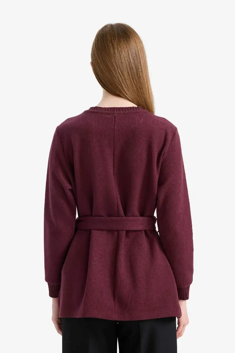 Regular Fit Велосипедный Вырез Мягкий Ворс Салоник Ткань Длинный Рукав Туника-Бордовый