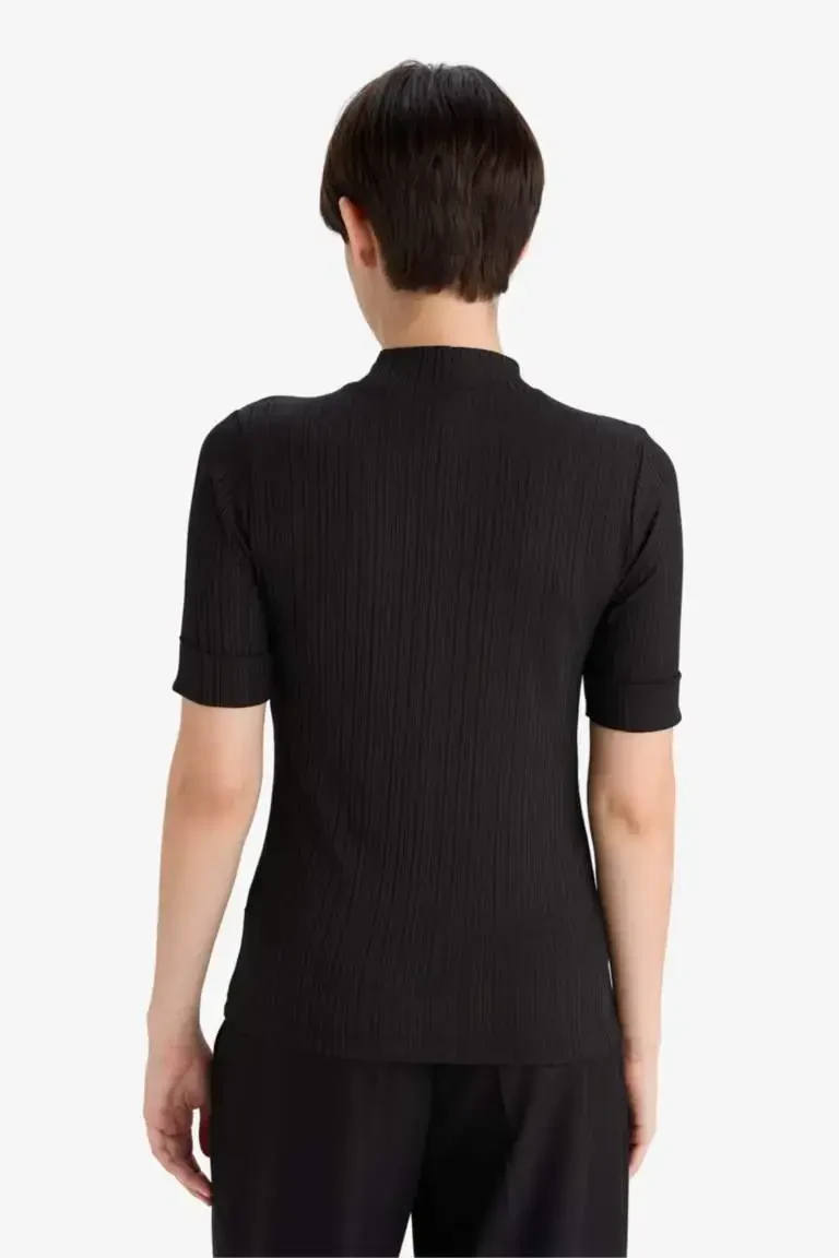 DeFacto'nun yeni sezon koleksiyonundan, şıklığı ve rahatlığı bir arada sunan Regular Fit Yarım Balıkçı Yaka Basic Düz Fitilli Kaşkorse Kısa Kollu Siyah Tişört ile tanışın! Bu özel tasarım tişört, modern kadının gardırobunun vazgeçilmez bir parçası olmaya aday. Siyahın asaleti, fitilli kaşkorse kumaşın dokusu ve yarım balıkçı yakanın zarif detayları bir araya gelerek, her ortamda stilinizi konuşturmanızı sağlayacak.Regular fit kalıbı sayesinde vücuda tam oturan, aynı zamanda hareket özgürlüğünüzü kısıtlamayan bu tişört, gün boyu konfor sunar. Kısa kollu tasarımı, özellikle ılıman havalarda veya ceket, hırka gibi dış giyim ürünleri ile kombinlendiğinde ideal bir seçenektir. Fitilli kaşkorse kumaş, tişörte hoş bir dokunuş kazandırırken, aynı zamanda dayanıklılığını da artırır.Yarım balıkçı yaka detayı, tişörte modern ve sofistike bir hava katar. Bu yaka kesimi, hem günlük kullanıma hem de daha özel anlara uygun bir görünüm elde etmenizi sağlar. Düz paça detayı ise, tişörtün genel tasarımını tamamlayarak şık bir bütünlük oluşturur.Bu tişört, %91 polyester ve %9 elastan karışımından üretilmiştir. Bu özel kumaş içeriği, tişörtün uzun ömürlü olmasını ve şeklini korumasını sağlar. Ayrıca, elastan içeriği sayesinde tişört, vücudunuza mükemmel bir şekilde uyum sağlar ve gün boyu rahat etmenizi sağlar.DeFacto Regular Fit Yarım Balıkçı Yaka Basic Düz Fitilli Kaşkorse Kısa Kollu Siyah Tişört, farklı beden seçenekleri ile her vücut tipine uygun alternatifler sunar. Modelin üzerindeki S beden, 1.80 cm boyunda, 83/60/88 ölçülerindedir. Ürün uzunluk ölçüleri ise şu şekildedir: S beden için omuzdan arka boy 59 cm, M beden için 60 cm, L beden için 61 cm, XL beden için 62 cm ve XXL beden için 63 cm'dir.Bu şık ve kullanışlı tişörtü, jeanlerinizle, eteklerinizle veya şortlarınızla kombinleyerek farklı tarzlar yaratabilirsiniz. İster günlük bir şıklık, ister daha özel bir davet için, bu tişört her zaman doğru seçim olacaktır.DeFacto kalitesiyle üretilen bu tişört, uzun yıllar boyunca gardırobunuzun vazgeçilmez bir parçası olacak. Şimdi sipariş verin ve stilinizi yepyeni bir seviyeye taşıyın!