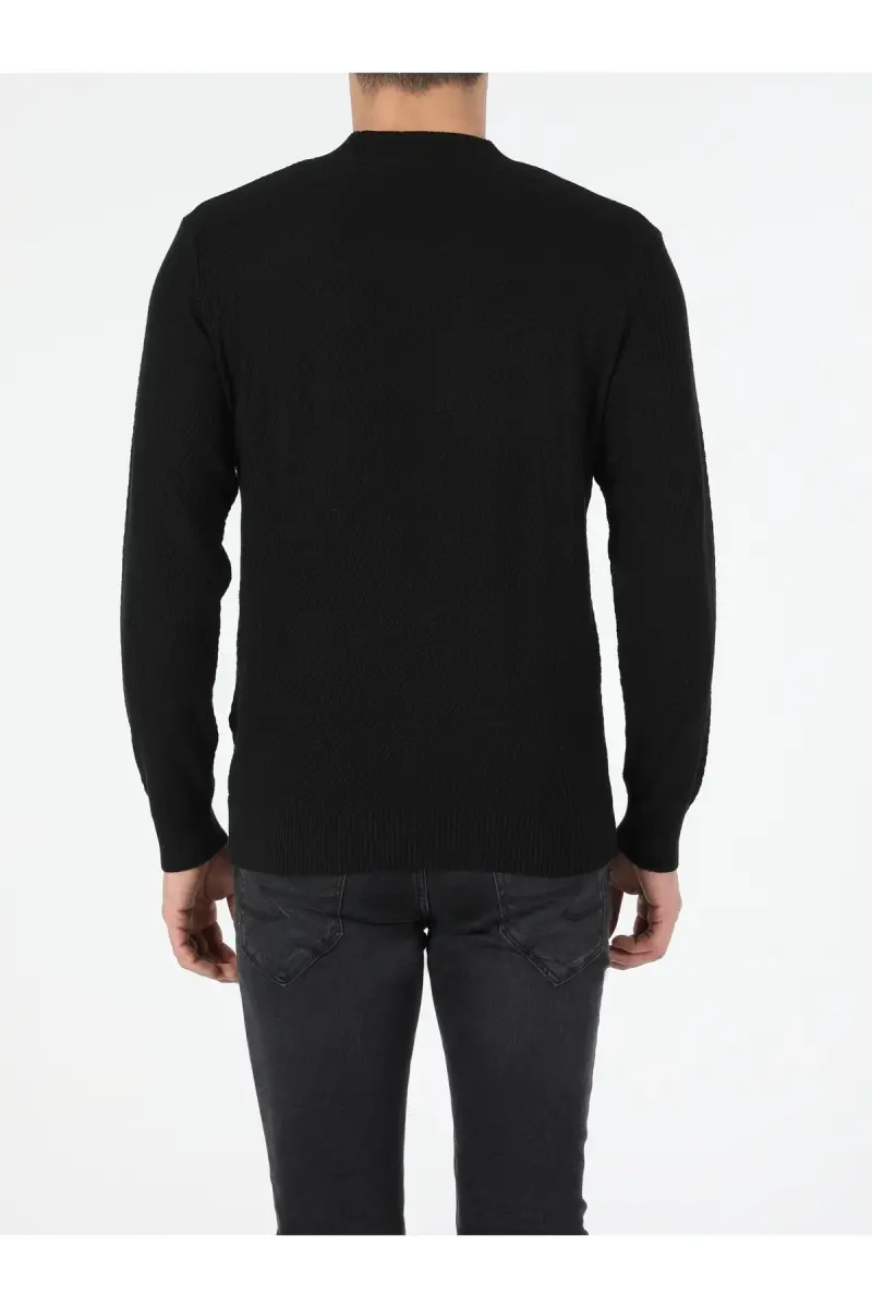 Regular Fit Yarım Balıkçı Yaka Erkek Siyah Kazak-Q1.V1_BLK