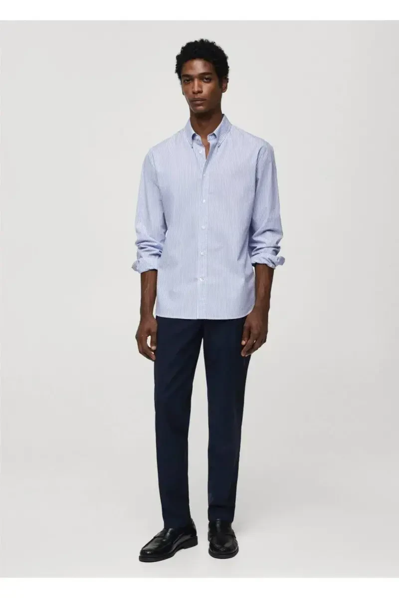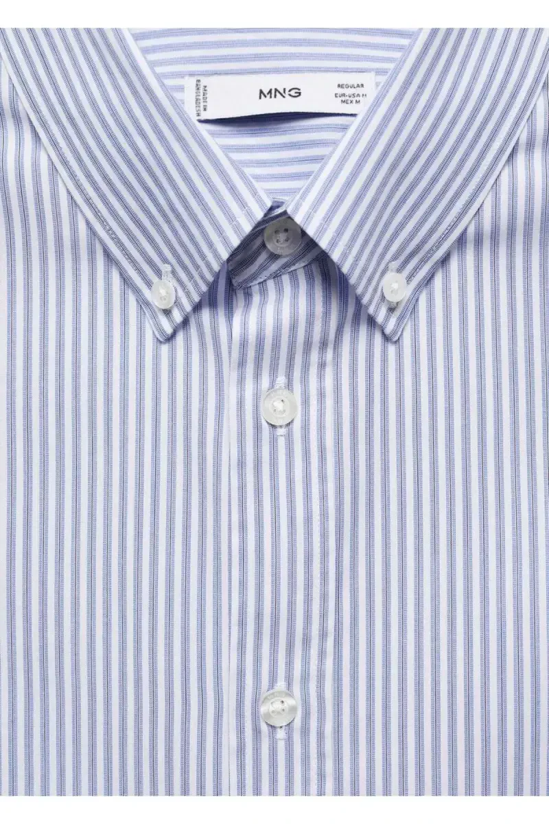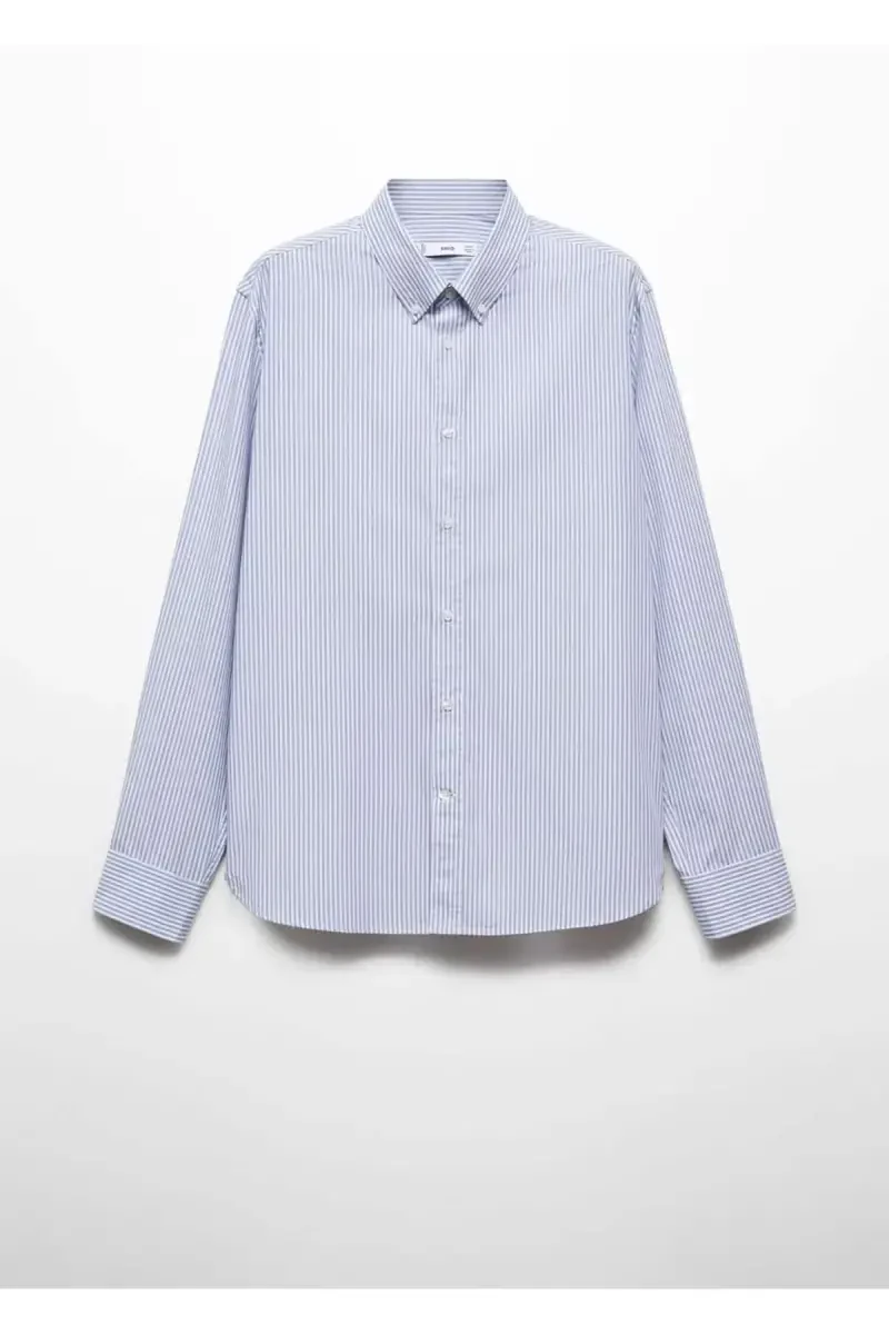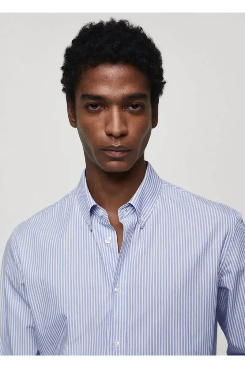 Regular kesim. Uzun kollu. Düğmeli yaka. Pamuklu kumaş. Çizgili desen.