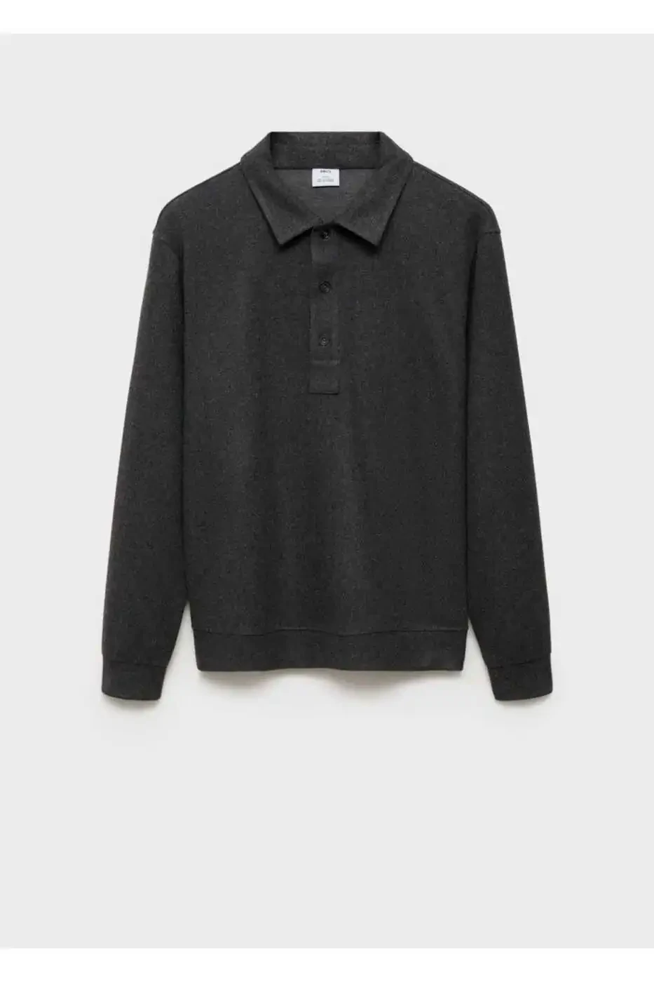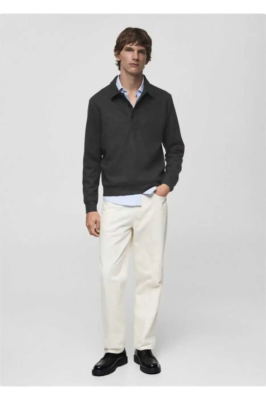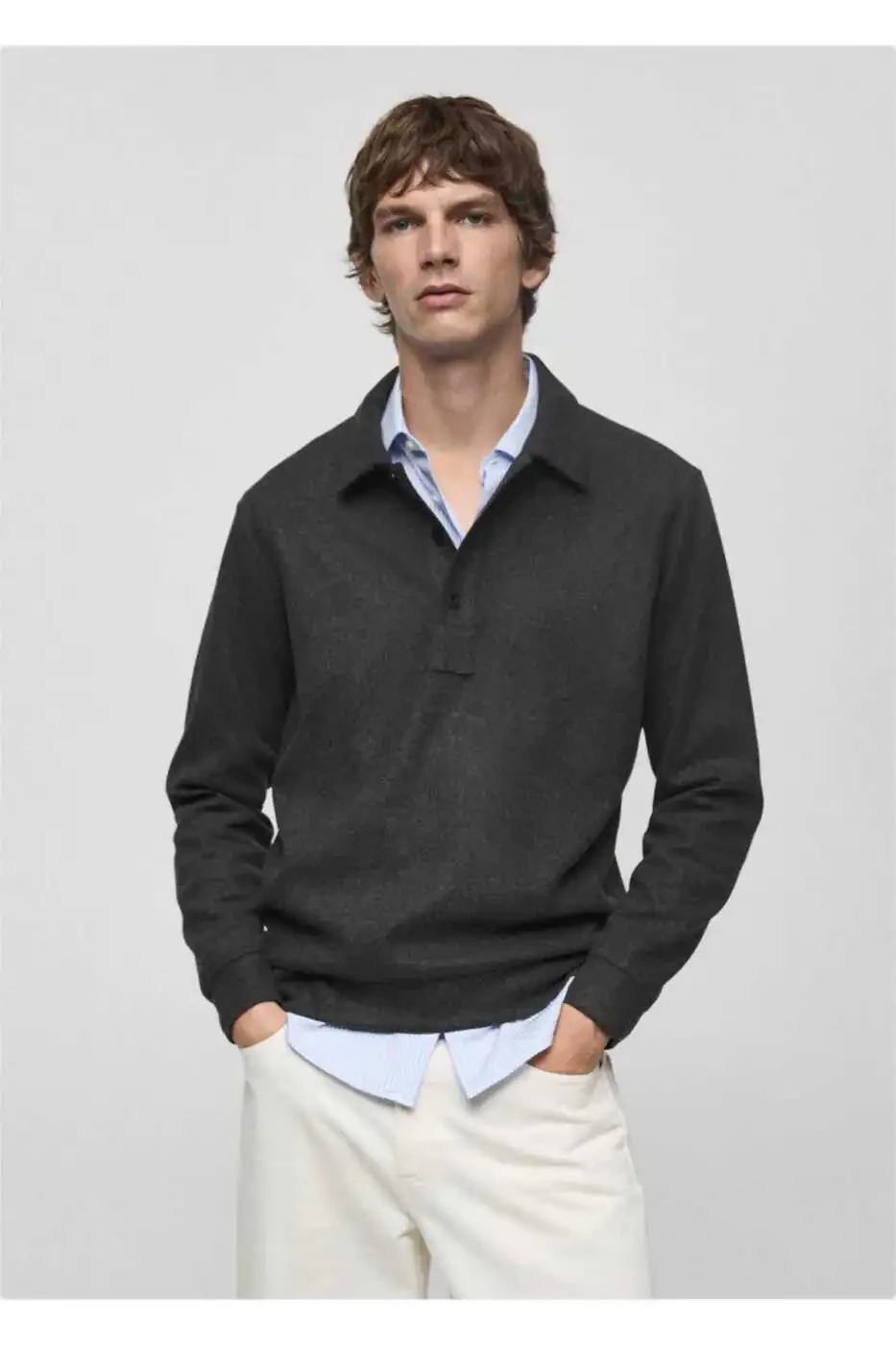 регулярный свитшот, свитшот из трикотажной ткани поло, свитшот mango, свитшот с отложным воротником на пуговицах, переработанные материалы, удобный свитшот, стильный свитшот, мужской свитшот