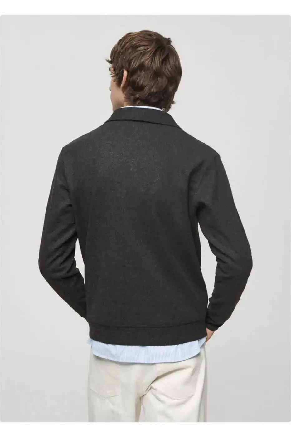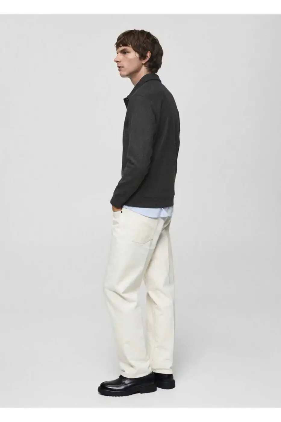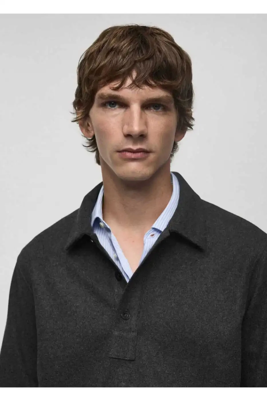 регулярный свитшот, свитшот из трикотажной ткани поло, свитшот mango, свитшот с отложным воротником на пуговицах, переработанные материалы, удобный свитшот, стильный свитшот, мужской свитшот