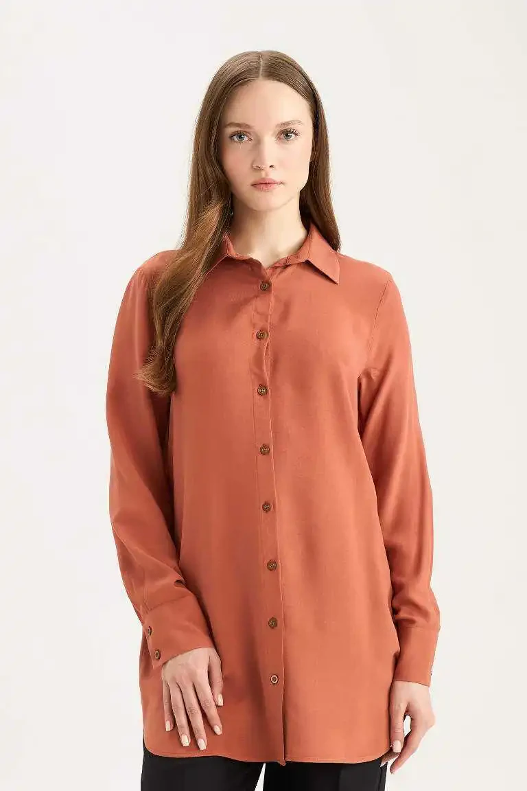 **Блузка-туника с длинным рукавом, базовая, прямого кроя, темно-оранжевая**