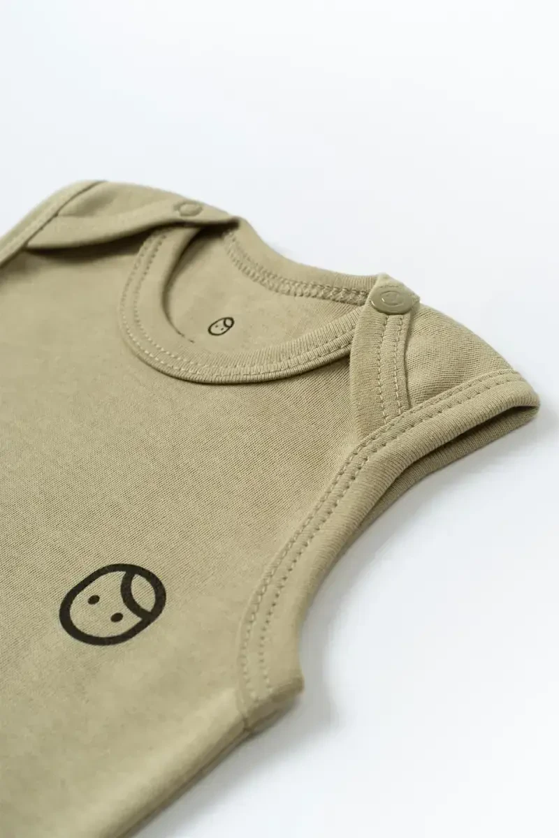 Кнопка-застежка, хаки майка | Органический хлопок, принт Gusto | Легко надевать